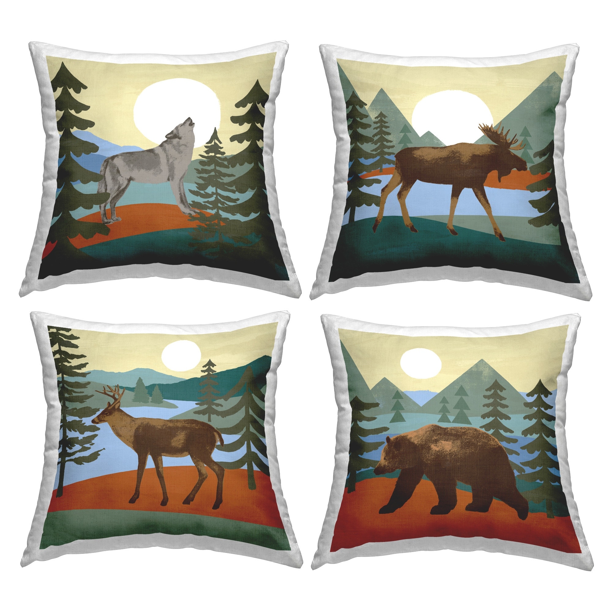 Stupell Industries Rustic Woodland Wildlife Silhouette Mountain Animals Printed Throw Pillow by Victoria Barnes (Set of 4)