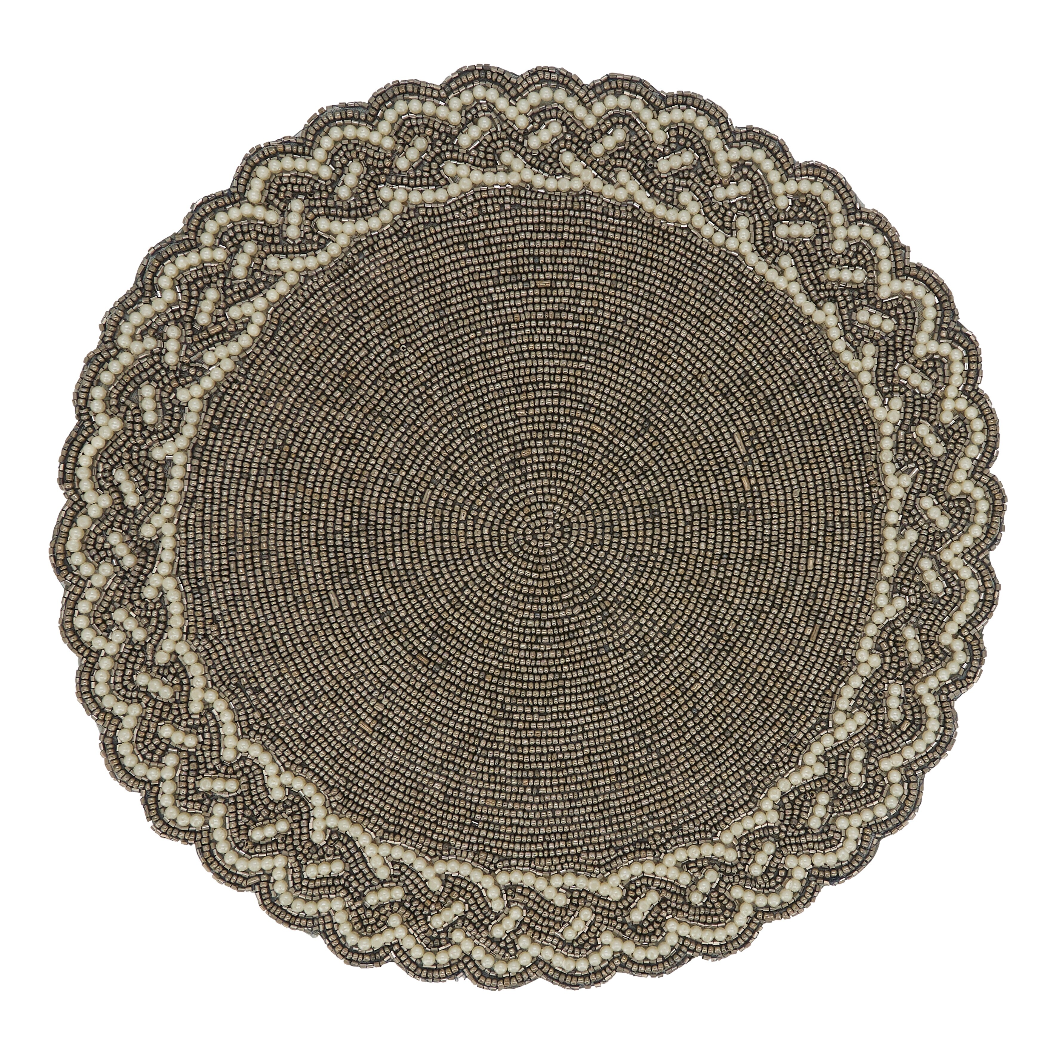 Beaded Placemats With Embroidered Design (Set of 4) - 14"x14"