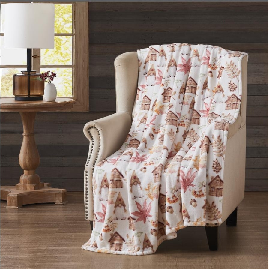Harvest Gnomes Printed Flannel Throw 50"x70"