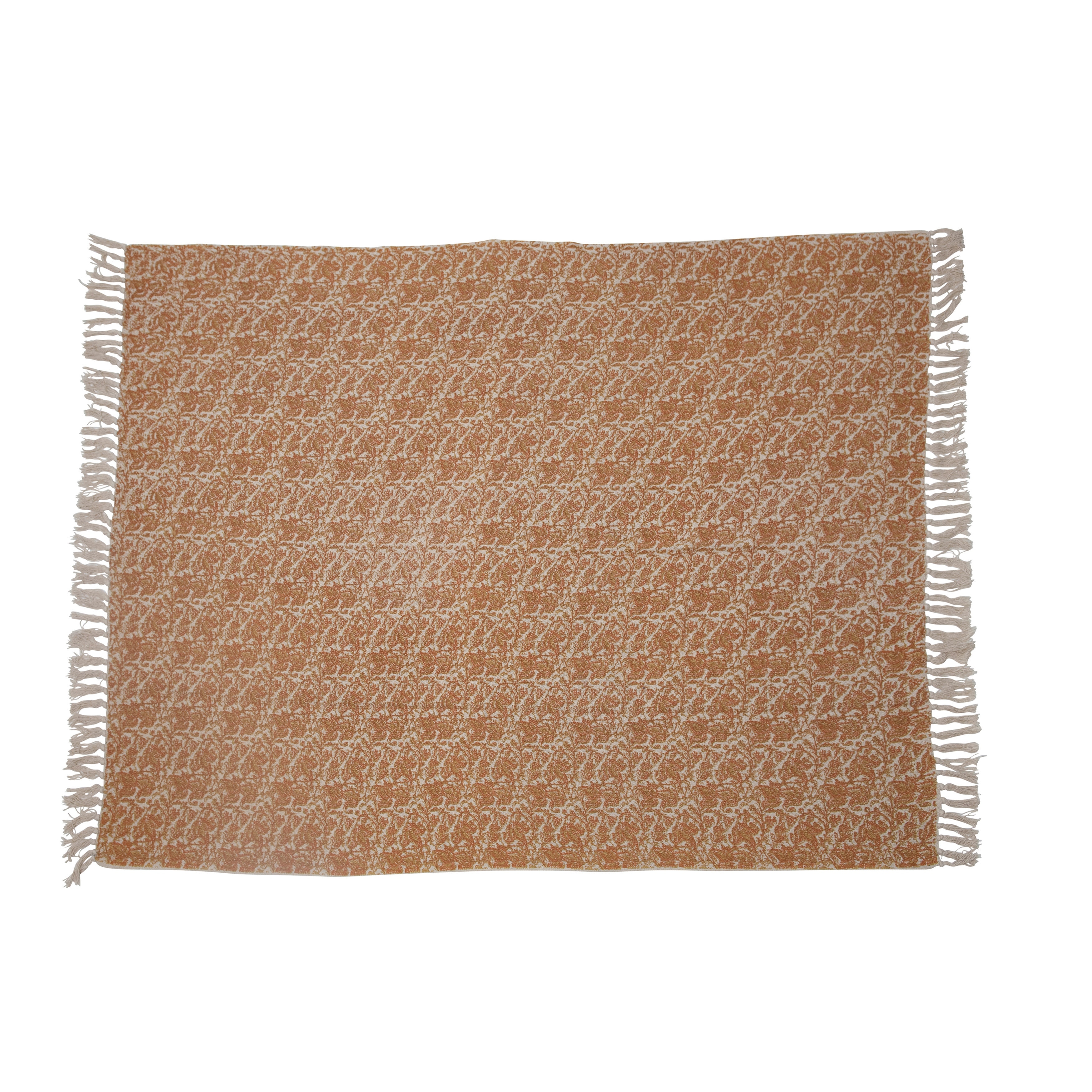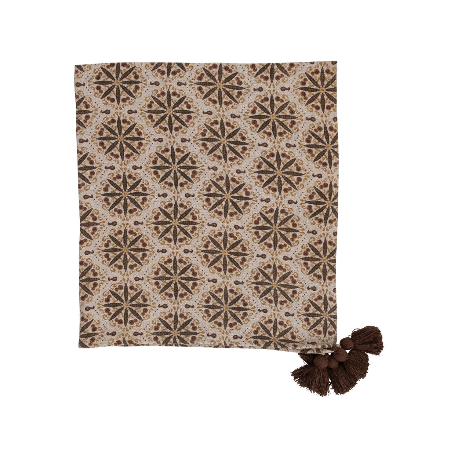 Recycled Cotton Blend Throw with Floral Medallion Print and Tassels