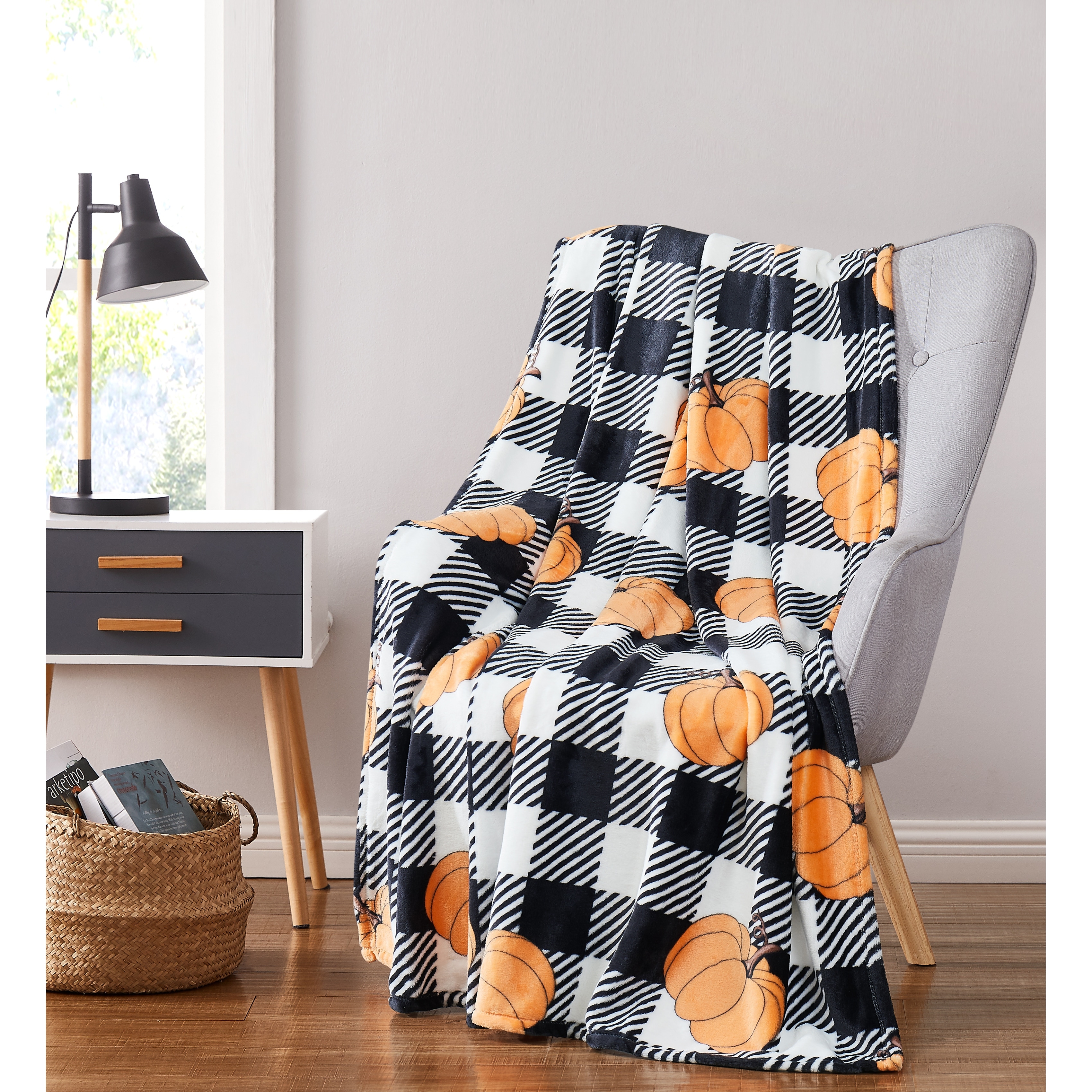Halloween Pumpkin Plaid Printed Flannel Throw 50"x70"