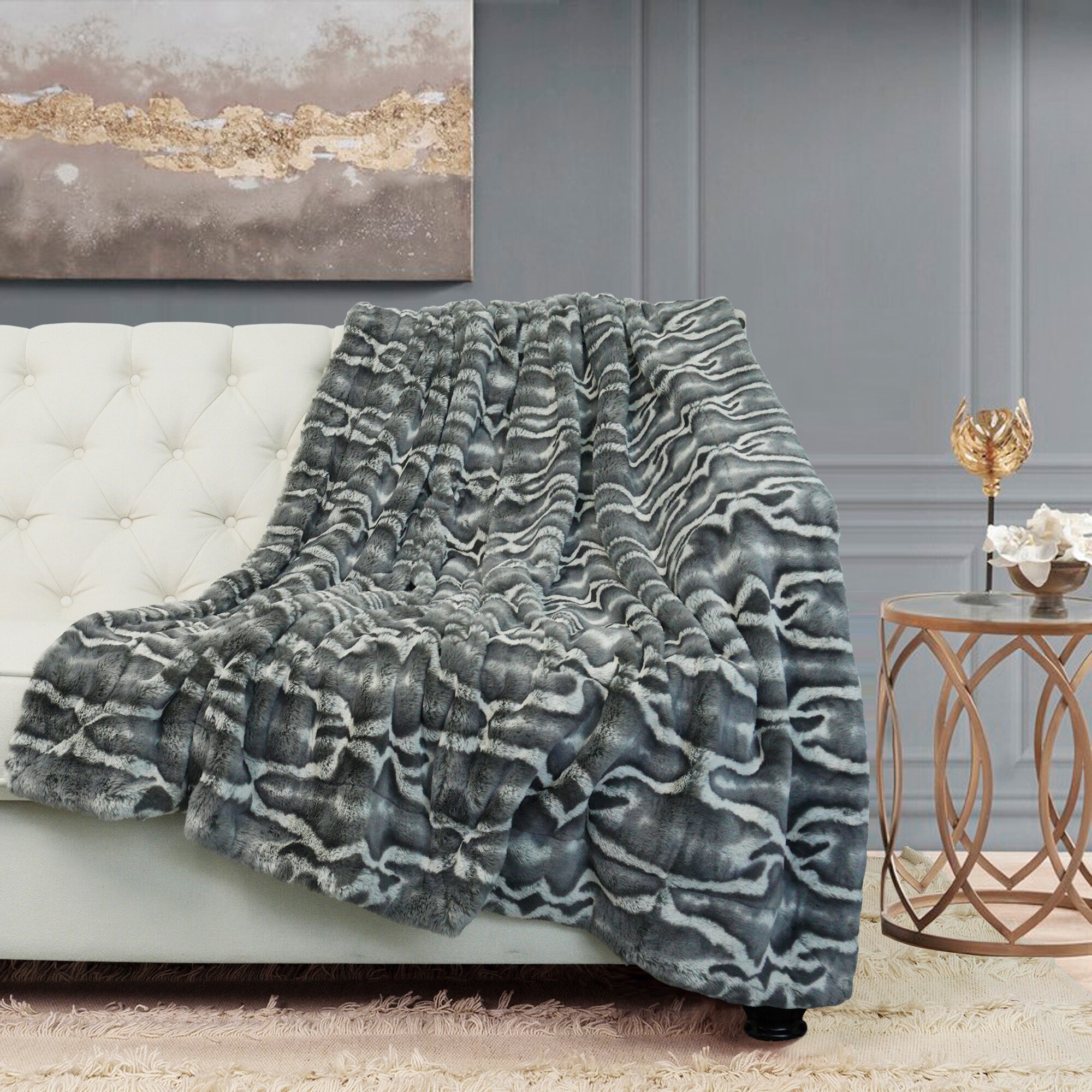 Madison Park Aina Oversized Faux Fur Marble Printed Knitted Throw