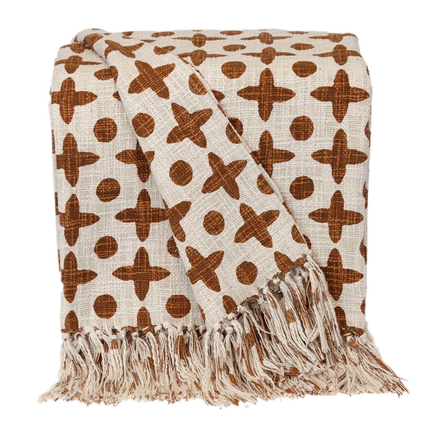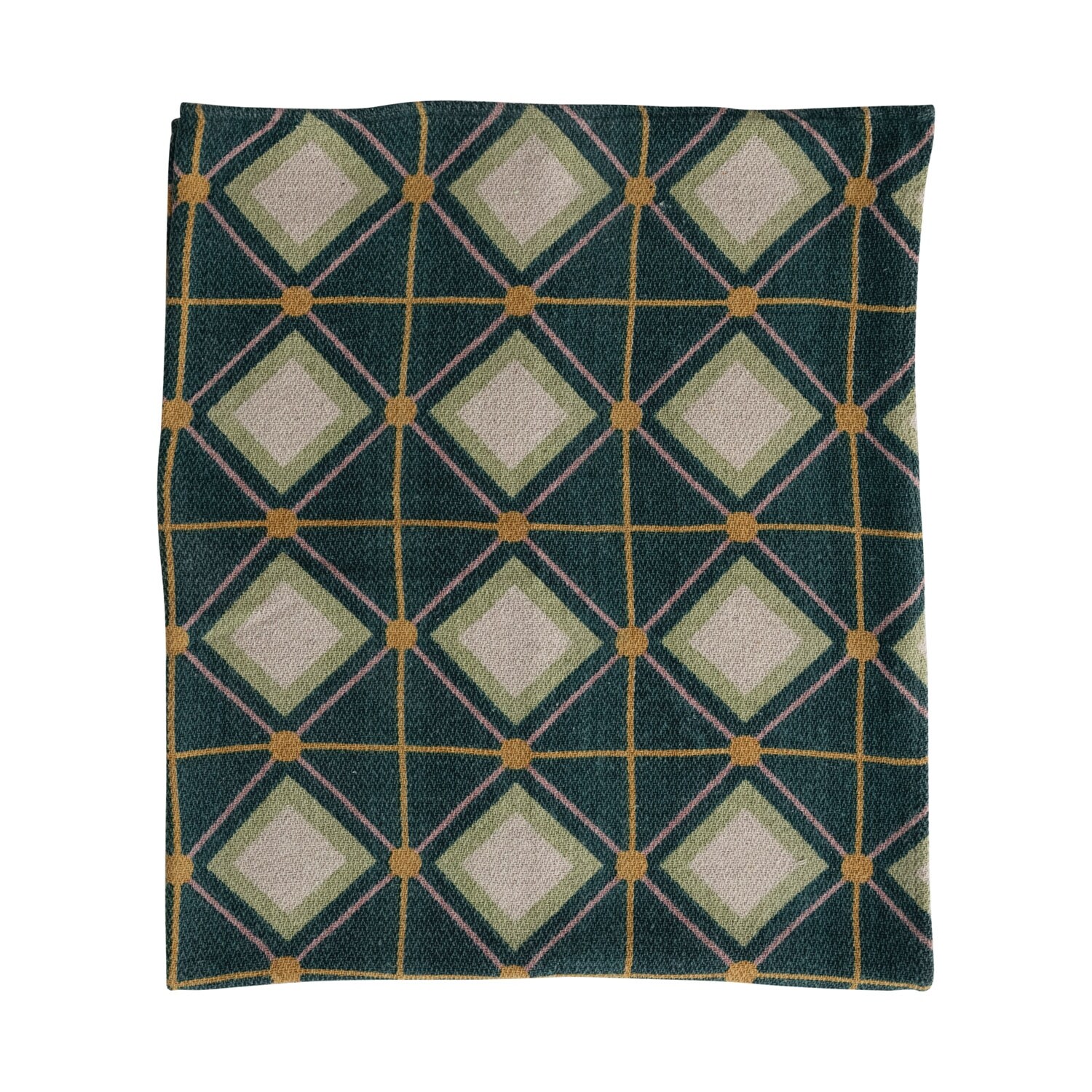 Recycled Cotton Blend Printed Throw with Diamond Pattern