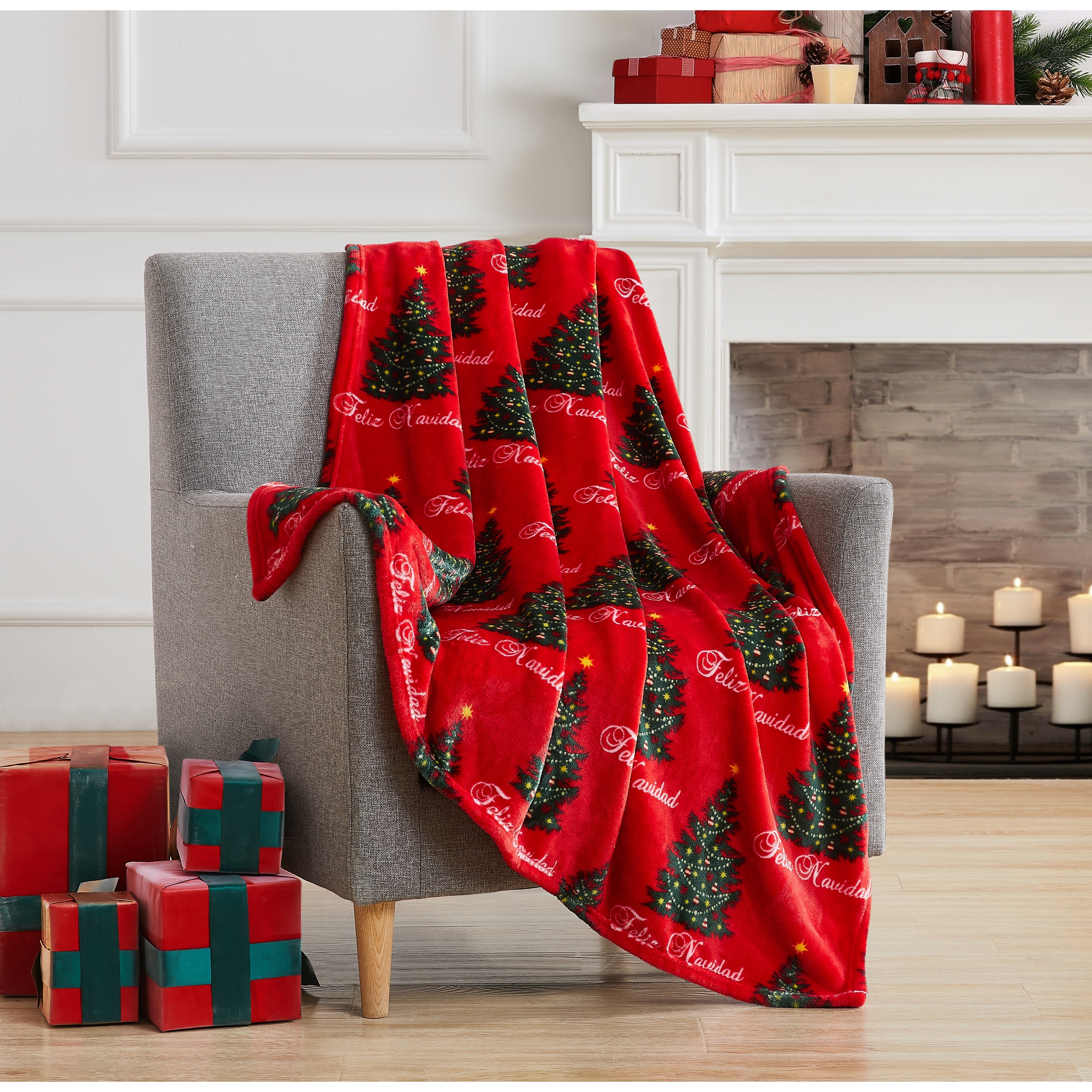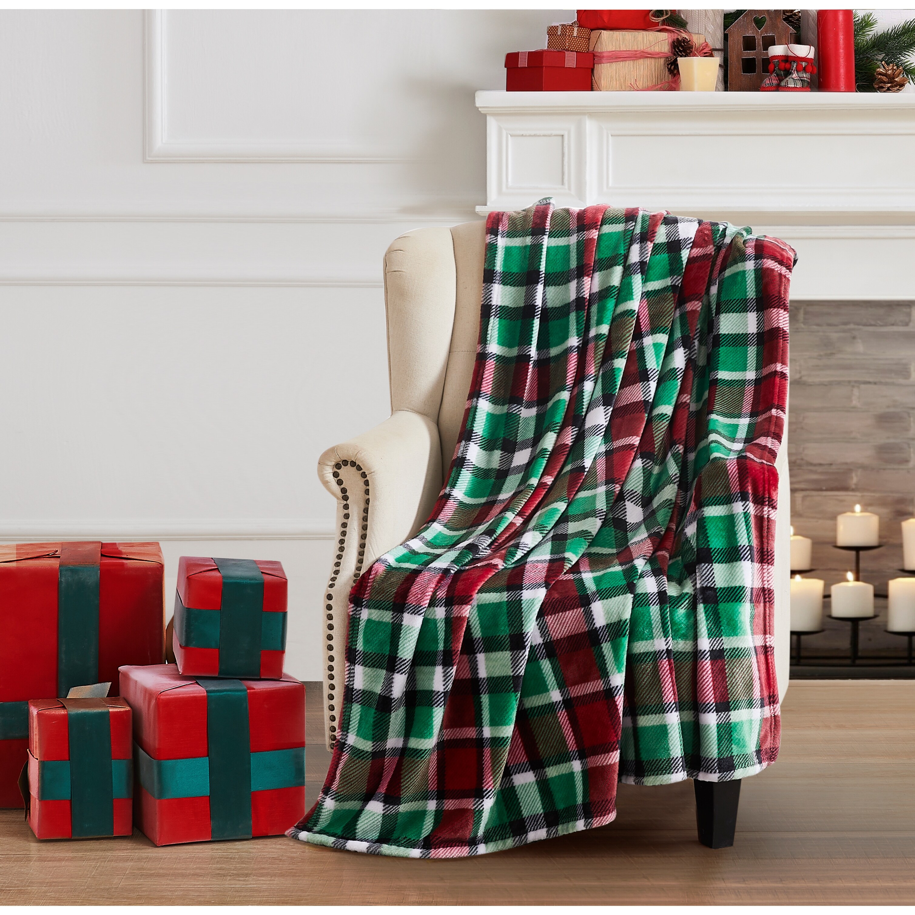 Christmas Joy Plaid Printed Flannel Throw 50"x60"