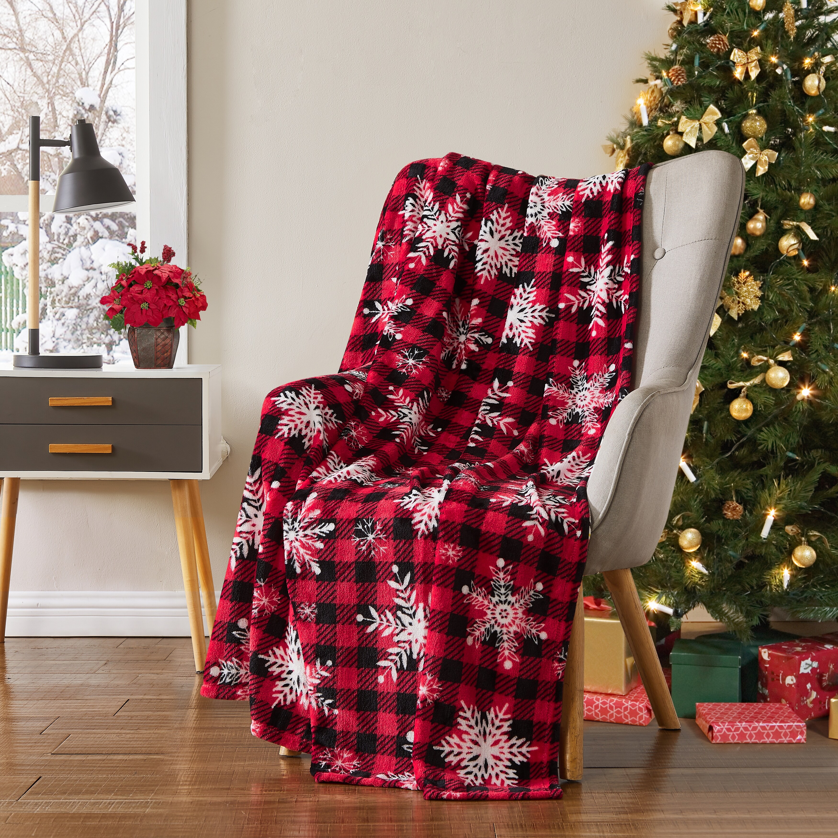 Christmas Plaid Snowflakes Printed Flannel Throw 50"x60"