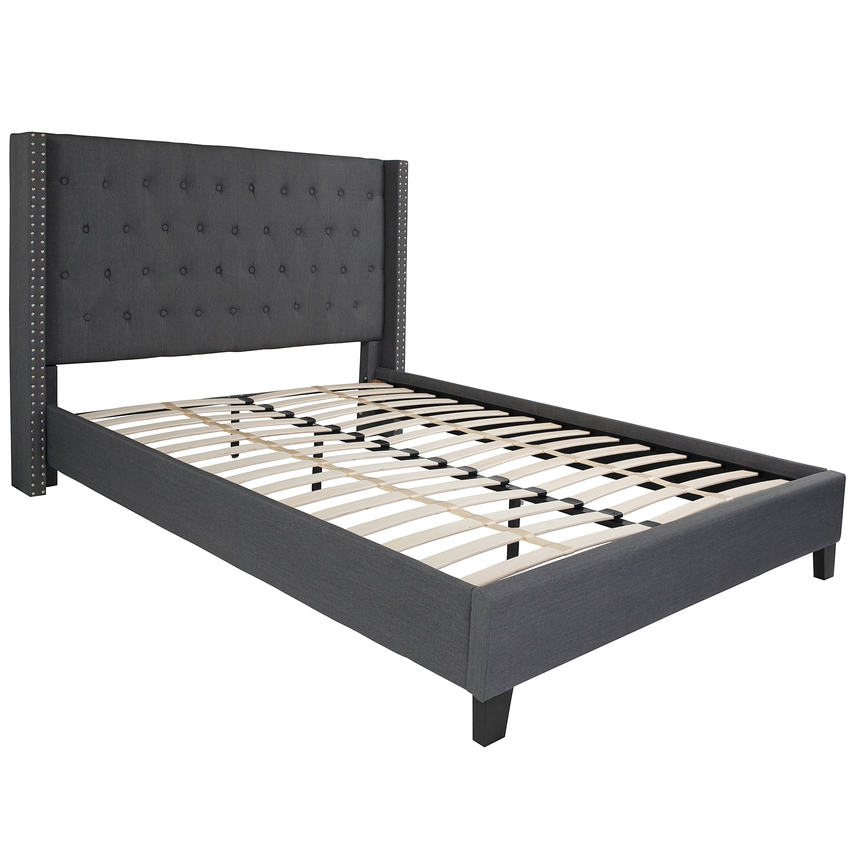 Conway Queen Size Dark Grey Wingback Button Tufted Platform Bed with Nailhead Trim