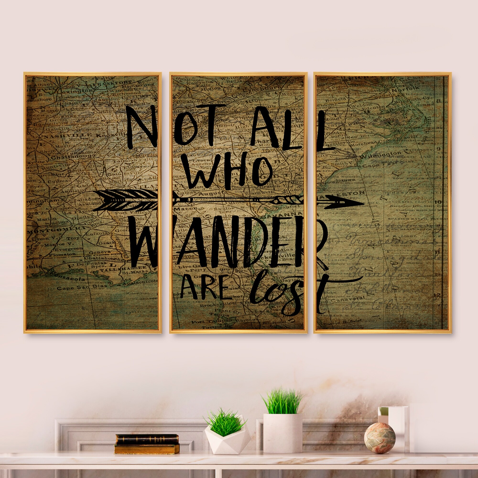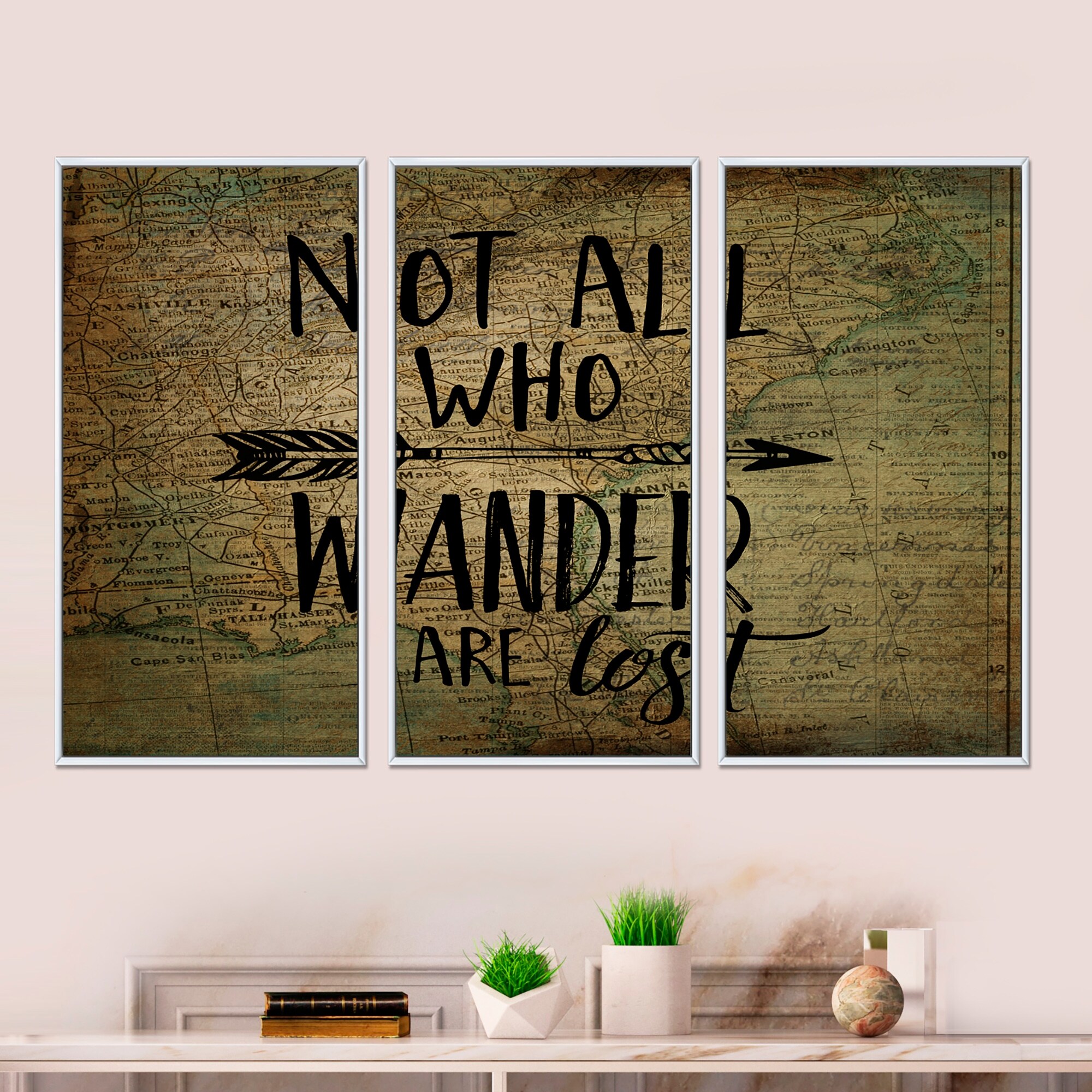 Designart "Wander Are Lost" Quote Framed Wall Art Set of 3 - 4 Colors of Frames