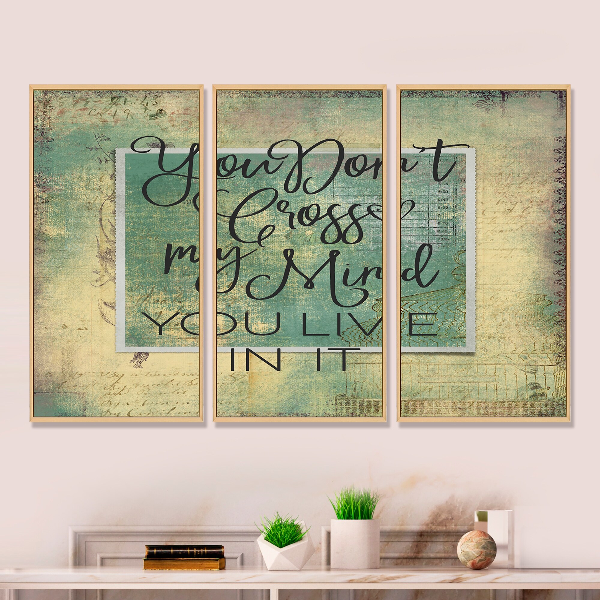 Designart "You Cross My Mind" Quote Framed Art Prints Set of 3 - 4 Colors of Frames