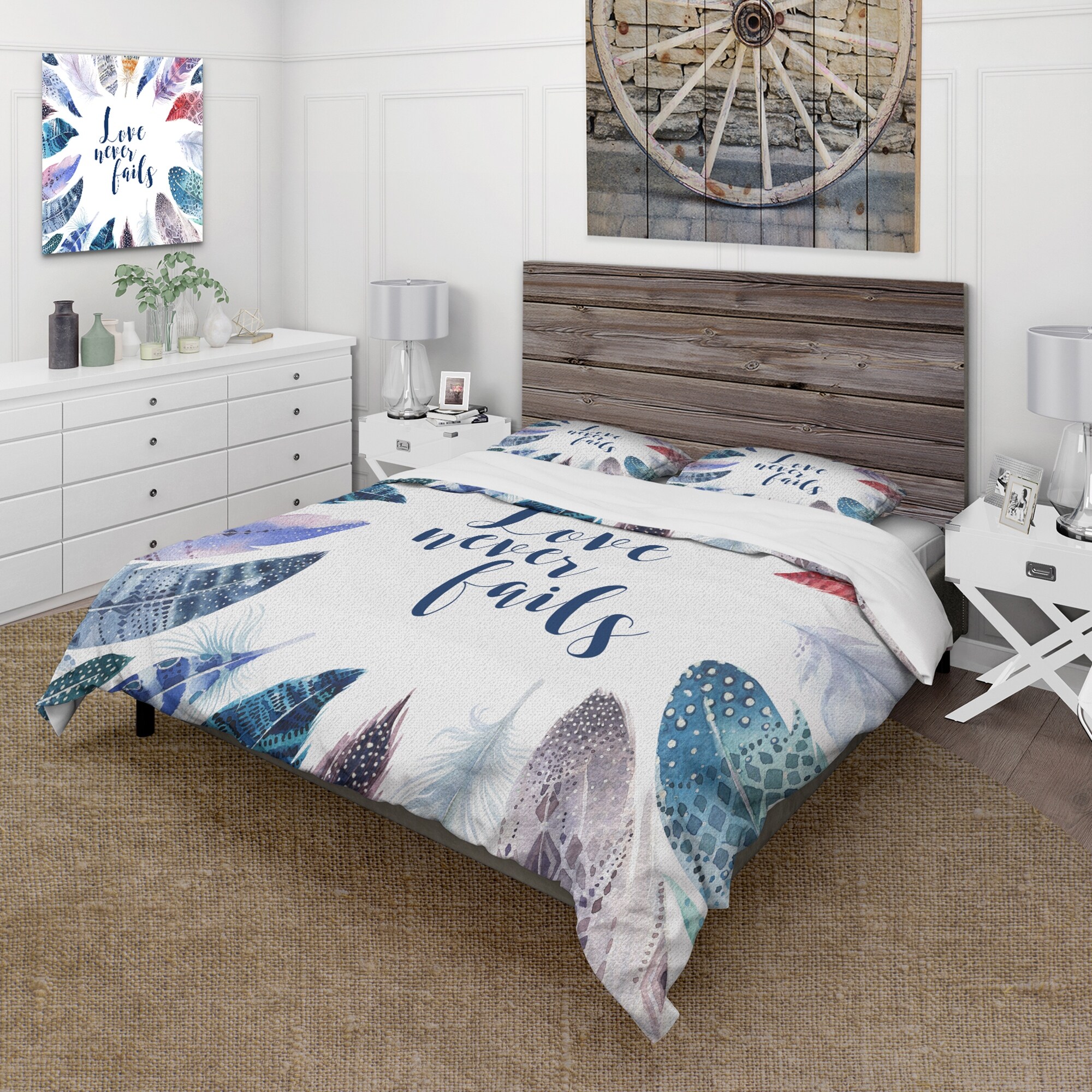 Designart 'Boho Feathers With Inspiring Quote' Bohemian & Eclectic Duvet Cover Comforter Set