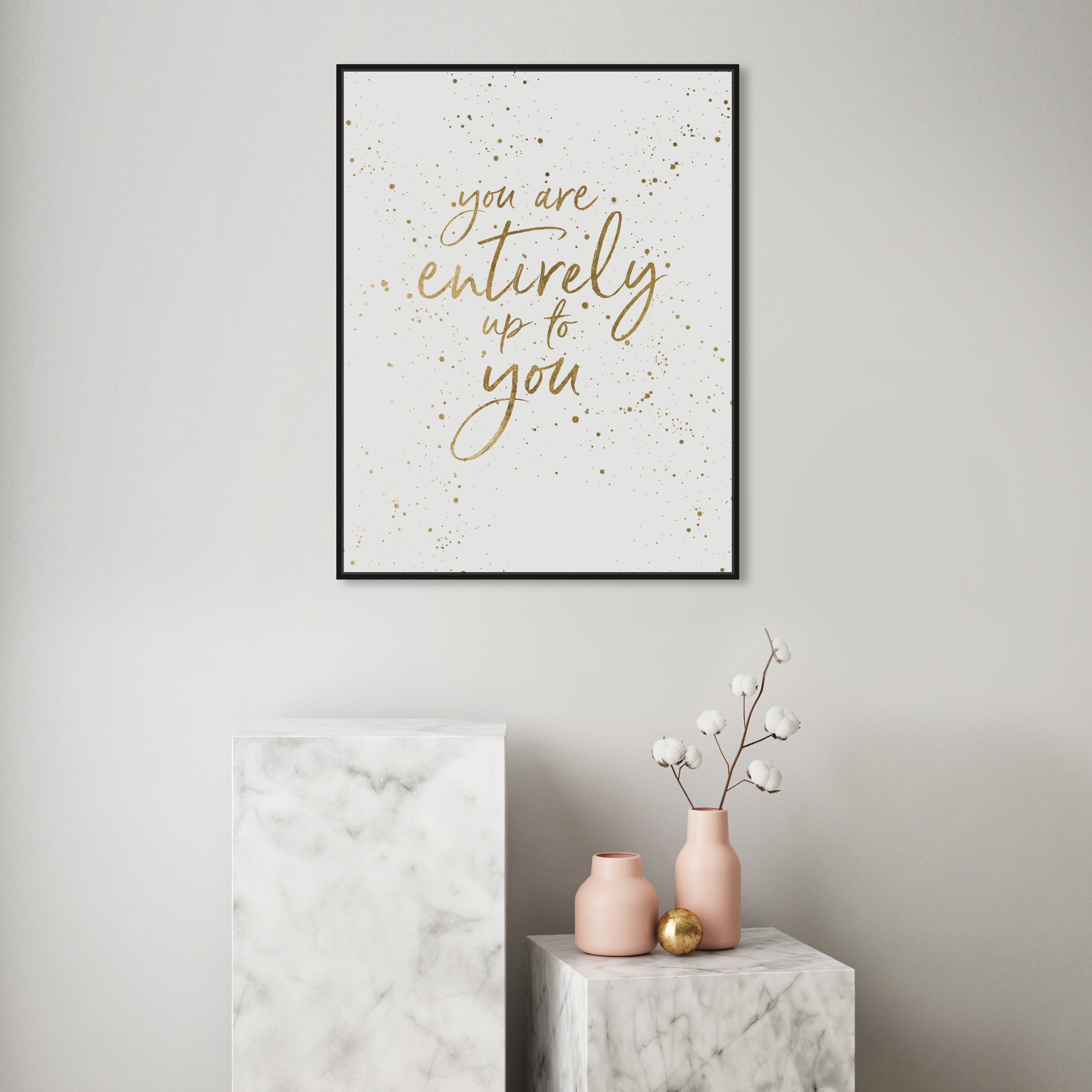 Oliver Gal 'Entirely Up to You Splat' Typography and Quotes Wall Art Framed Canvas Print Inspirational - Gold, White
