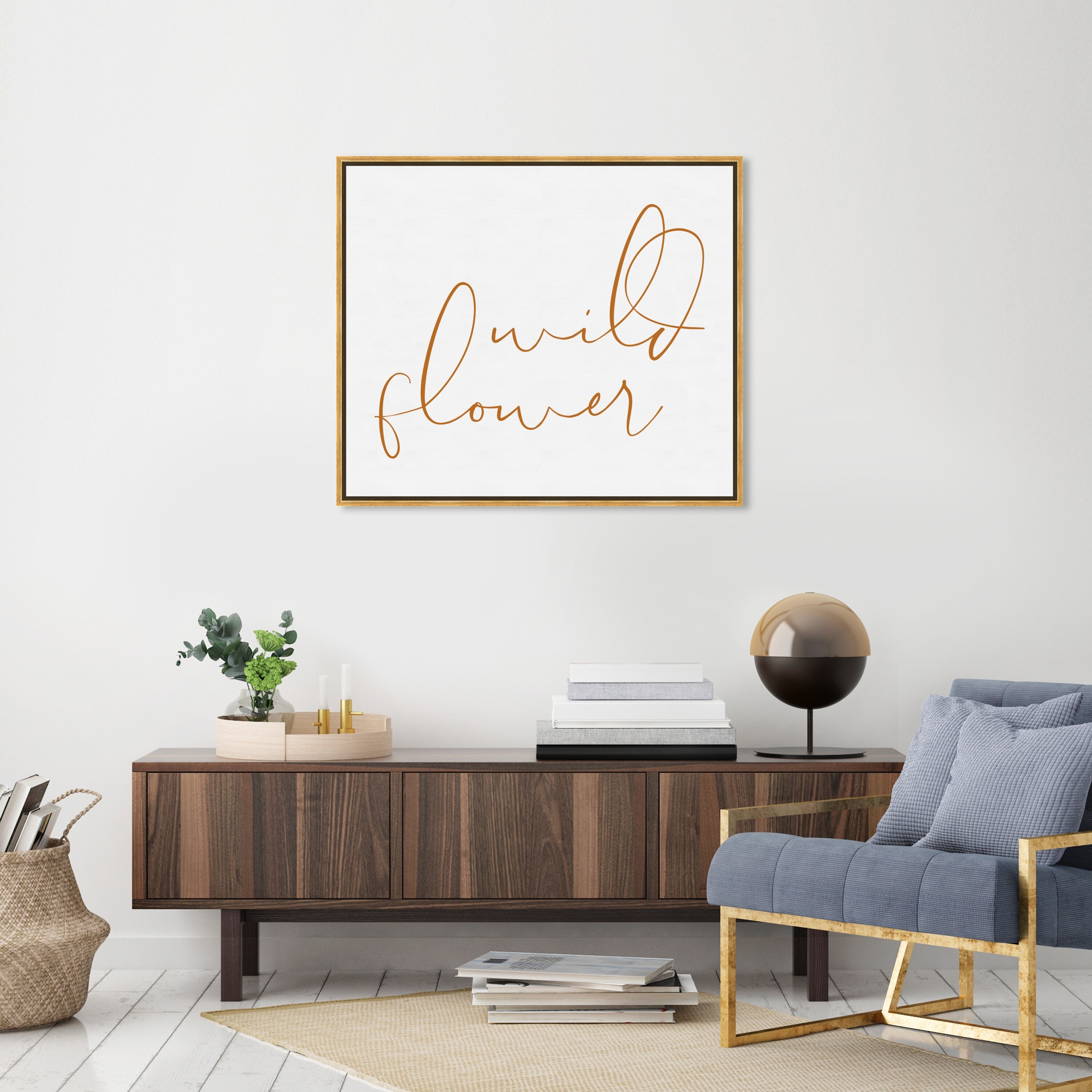 Oliver Gal 'Wild Flower Burnt Orange' Typography and Quotes Wall Art Framed Canvas Print Motivational - White, Gold