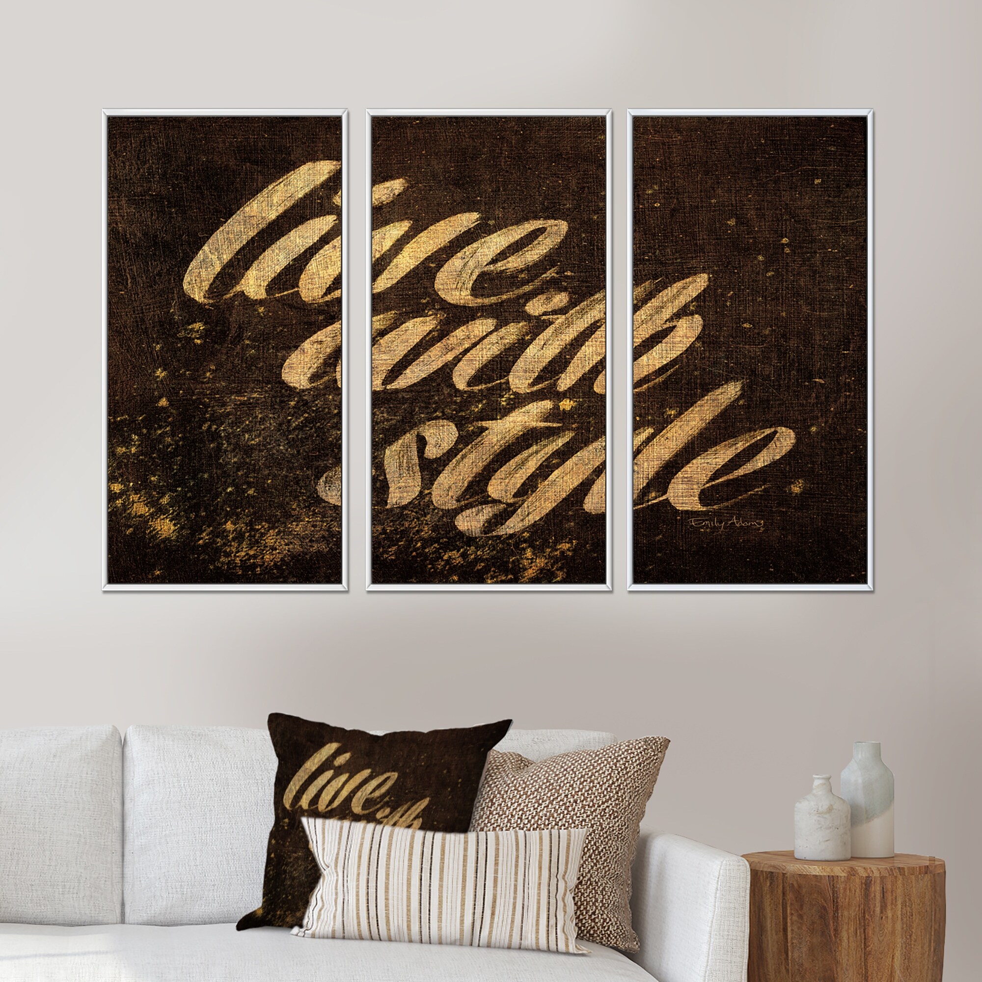Designart "Gold Glam Live with Style Quotes" Traditional Framed Artwork Set of 3 - 4 Colors of Frames
