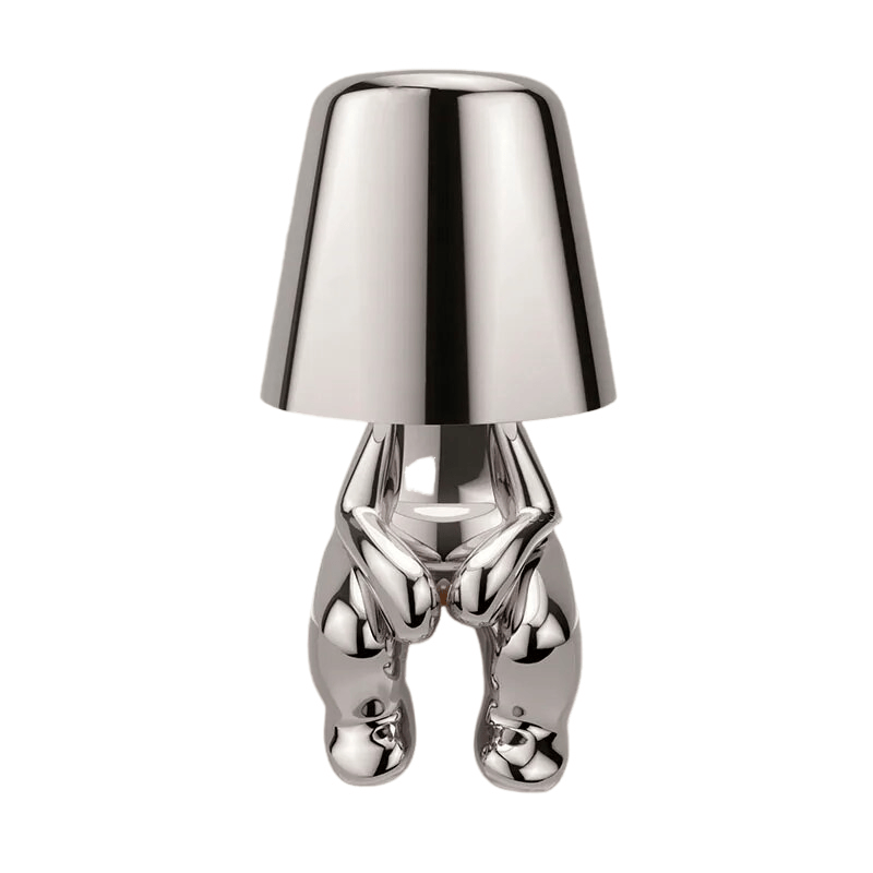 Anyhouz Hotel Lightning Lamp Rechargeable Silver Little Man Sitting Position Table Lamps Touch Switch Decoration Led Night Light