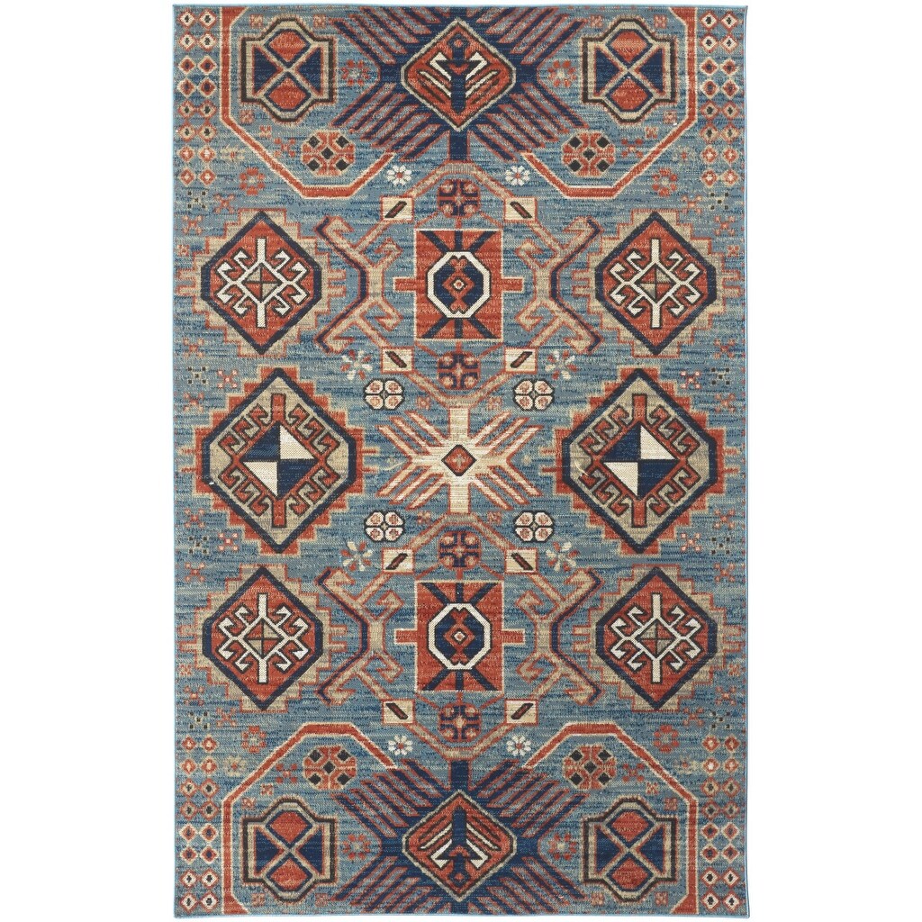 HomeRoots 2' X 3' Blue Red And Tan Abstract Power Loom Distressed Stain Resistant Area Rug - 2' x 3'