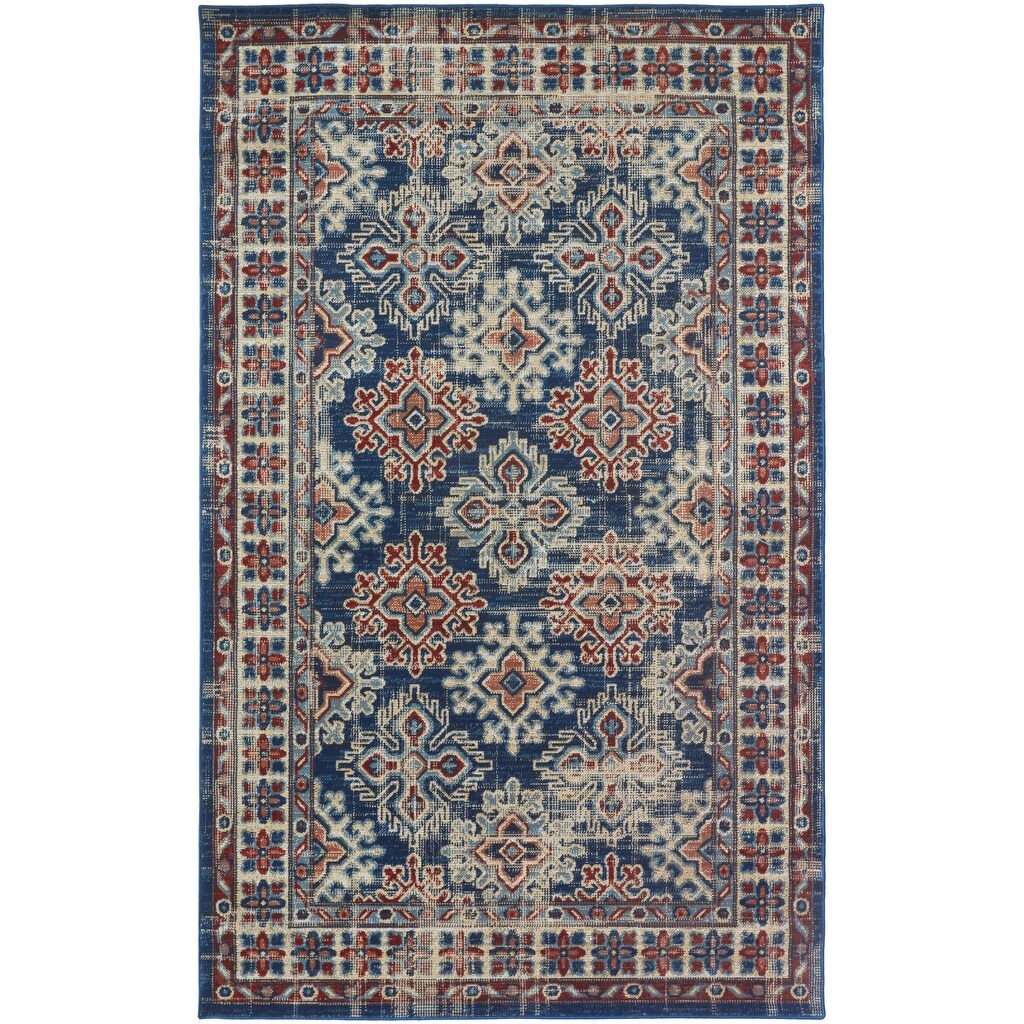 HomeRoots 2' X 3' Blue Red And Ivory Abstract Power Loom Distressed Stain Resistant Area Rug - 2' x 3'