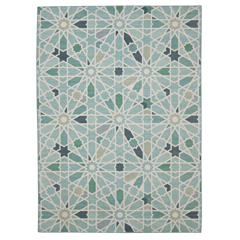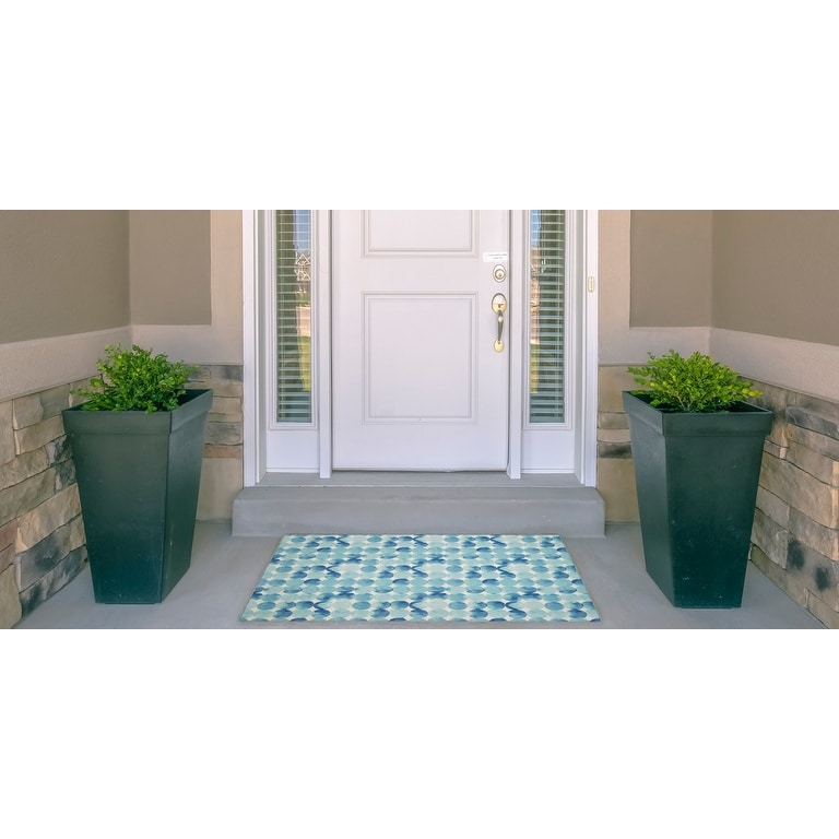 Indoor/Outdoor Water Resistant Pompano Blue & Ivory Washable Area Rug Washable Area Rug - 2' x 3'