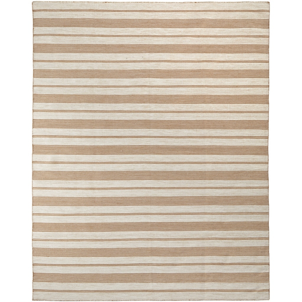 HomeRoots 2' X 3' Ivory Taupe And Brown Striped Dhurrie Hand Woven Stain Resistant Area Rug - 2' x 3'