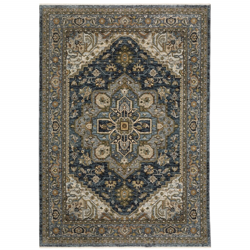 HomeRoots 2' X 3' Blue Taupe Grey Green Rust Tan Beige And Gold Oriental Power Loom Stain Resistant Area Rug With Fringe
