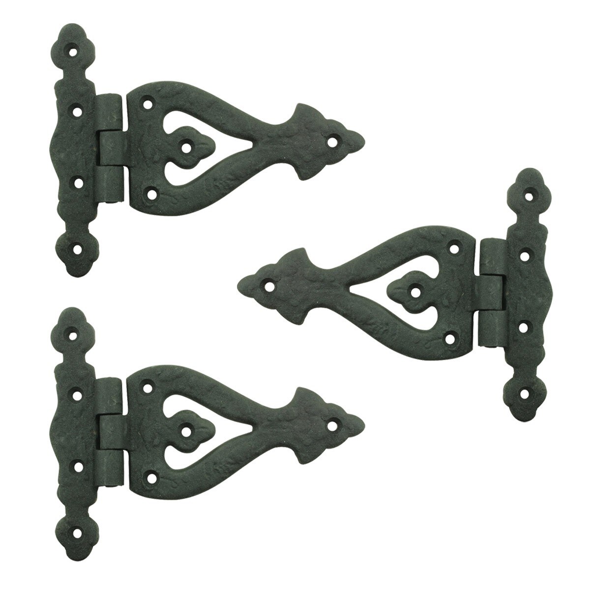 Black Wrought Iron Door Strap Hinge 3" L Victorian Eternity Rust Resistant Flush Mount Pack of 3 Renovators Supply
