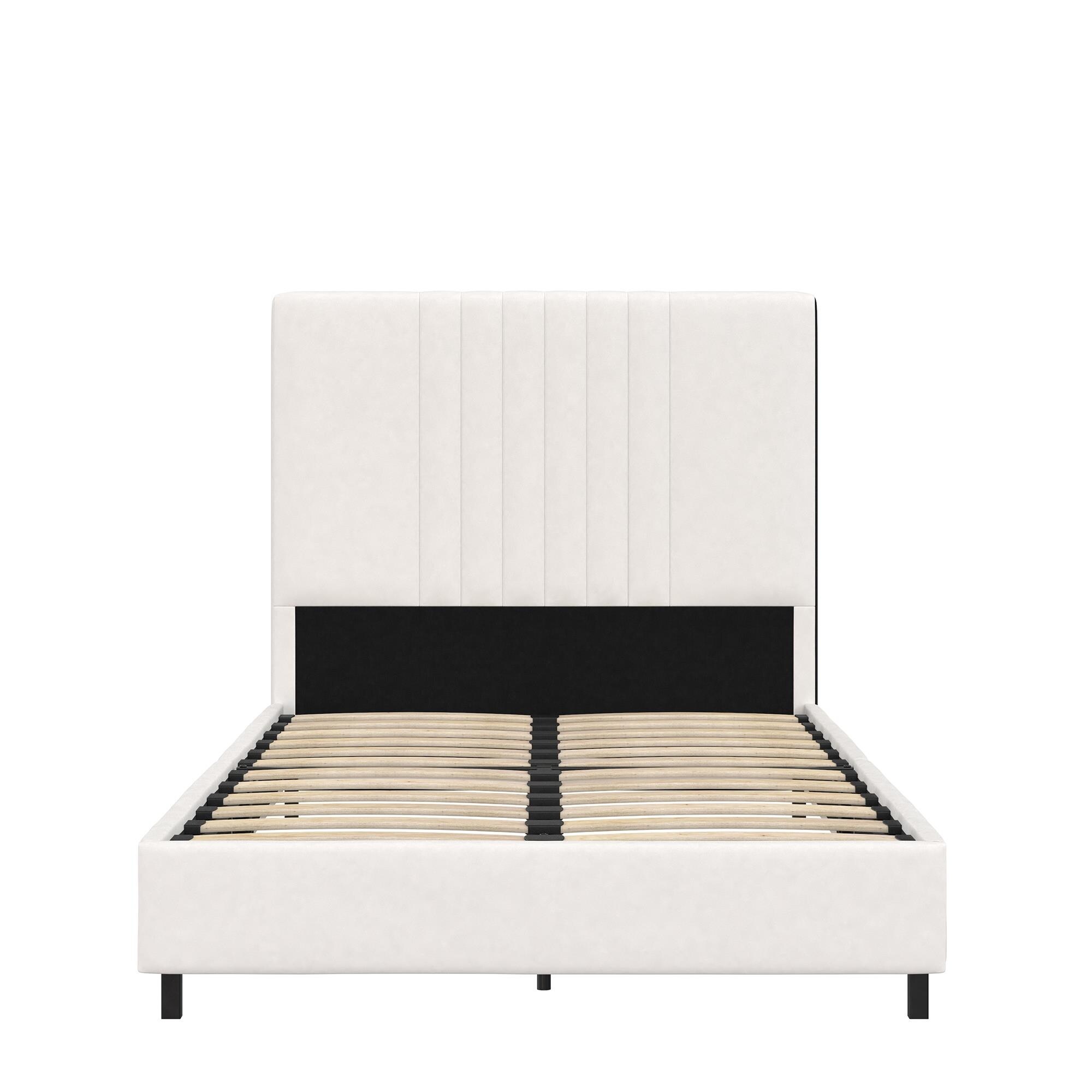 RealRooms Rio Upholstered Platform Bed with Wooden Slats and Vertical Tufted Headboard