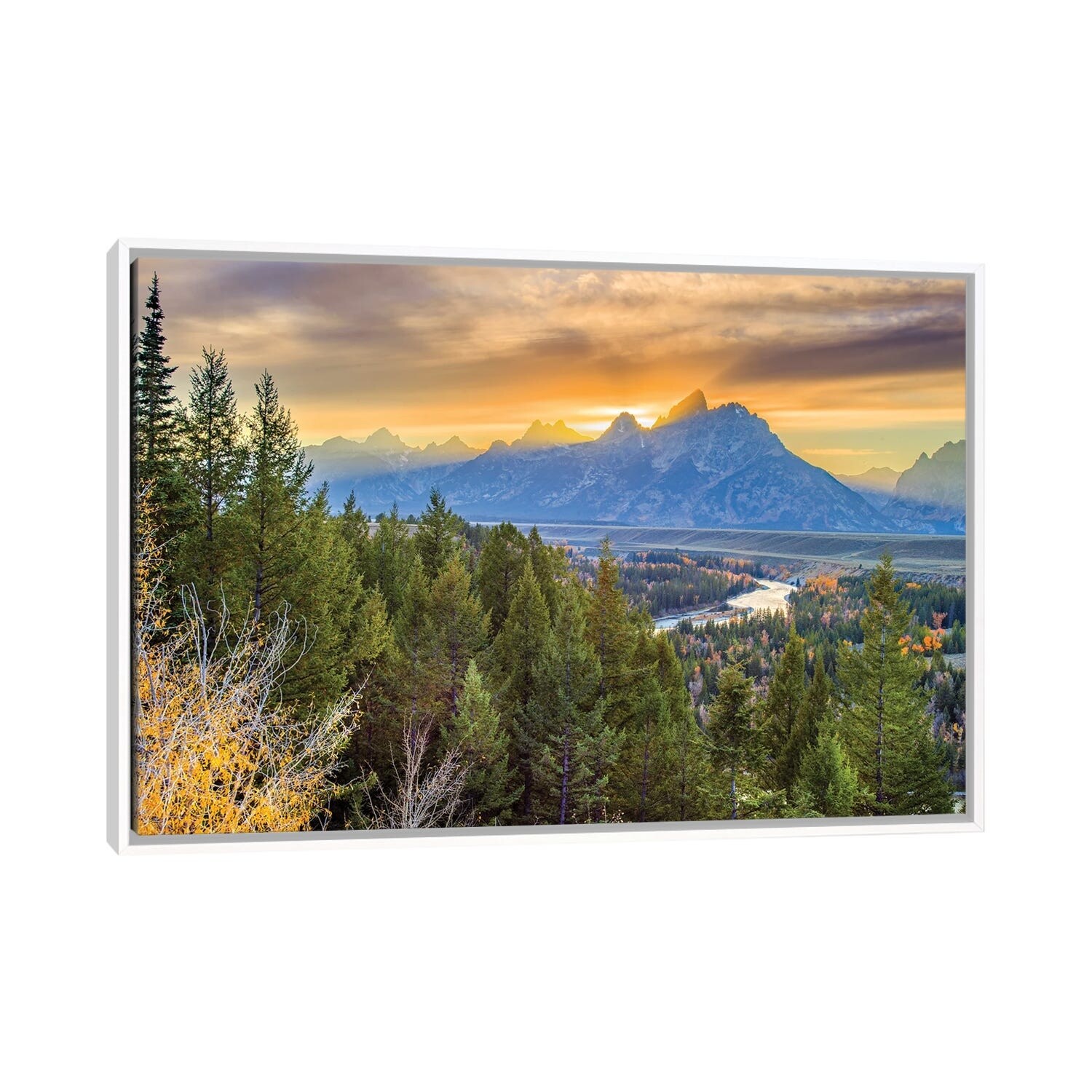 iCanvas "River Dramatic Sunset Grand Teton" by Susanne Kremer Framed Canvas Print