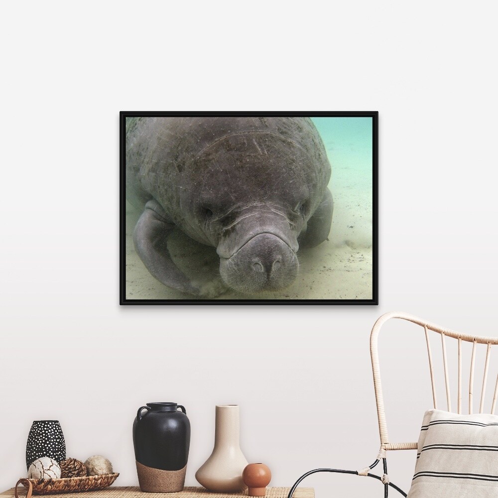 "Manatees at Crystal River, Florida" Black Float Frame Canvas Art