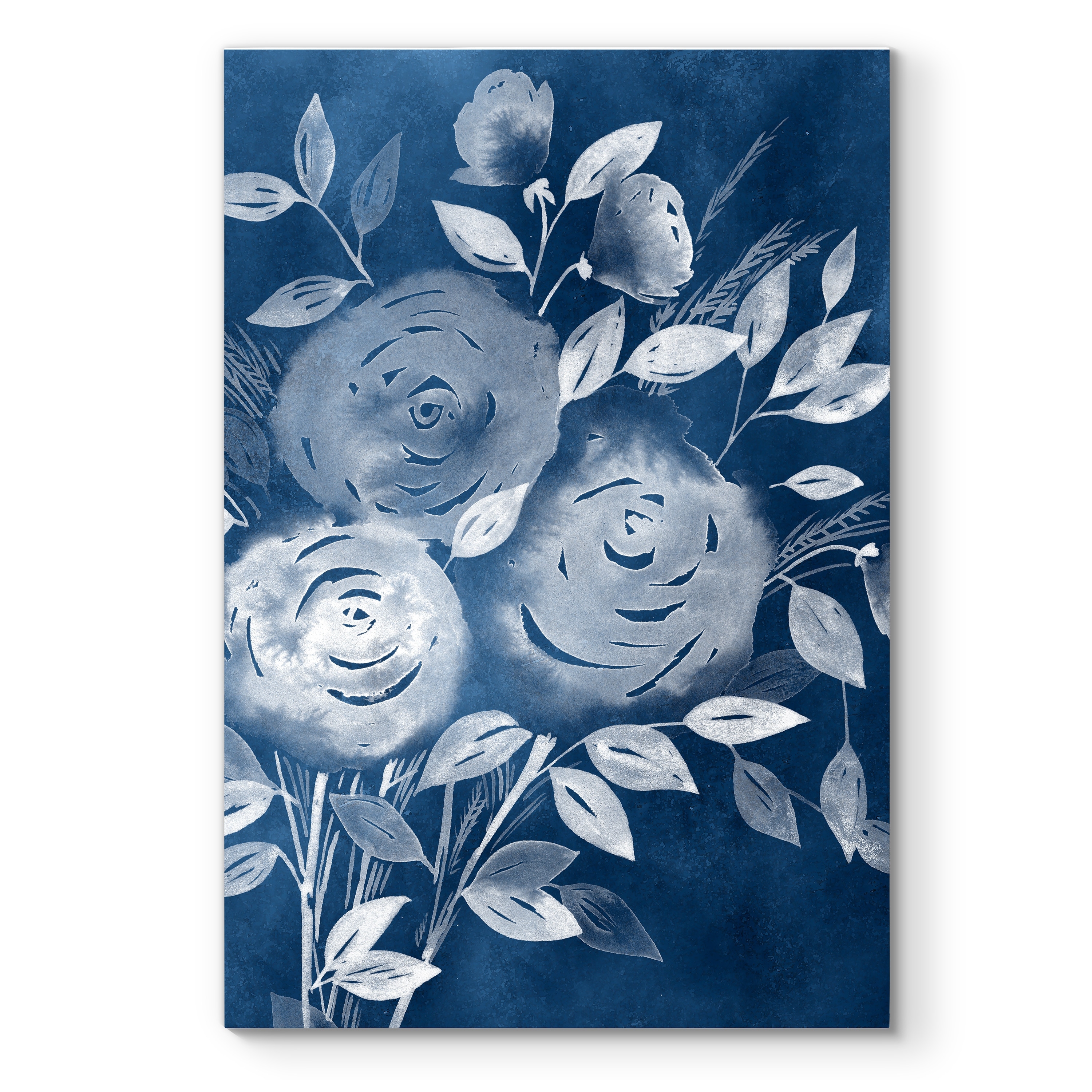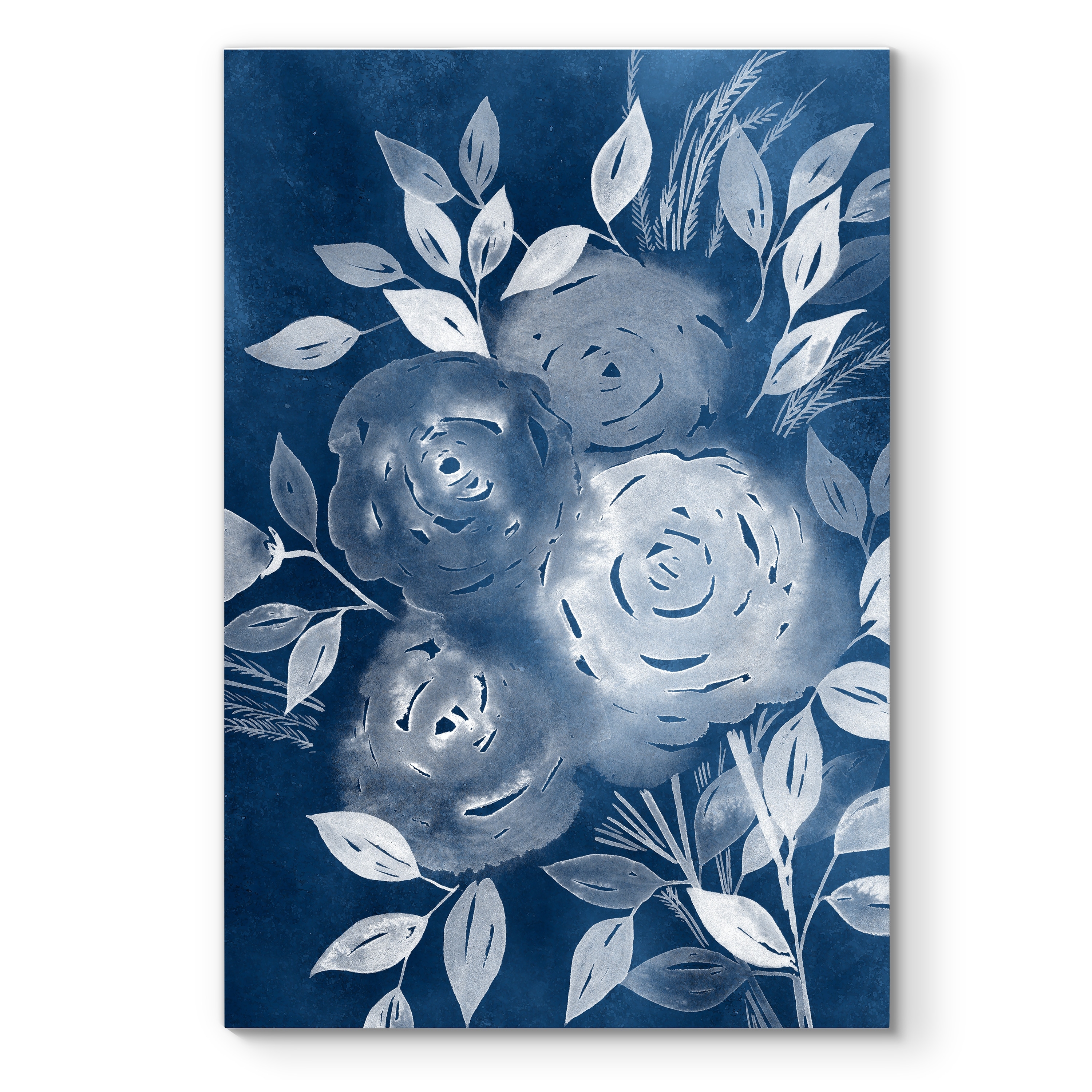 Cyanotype Roses I -Premium Gallery Wrapped Canvas