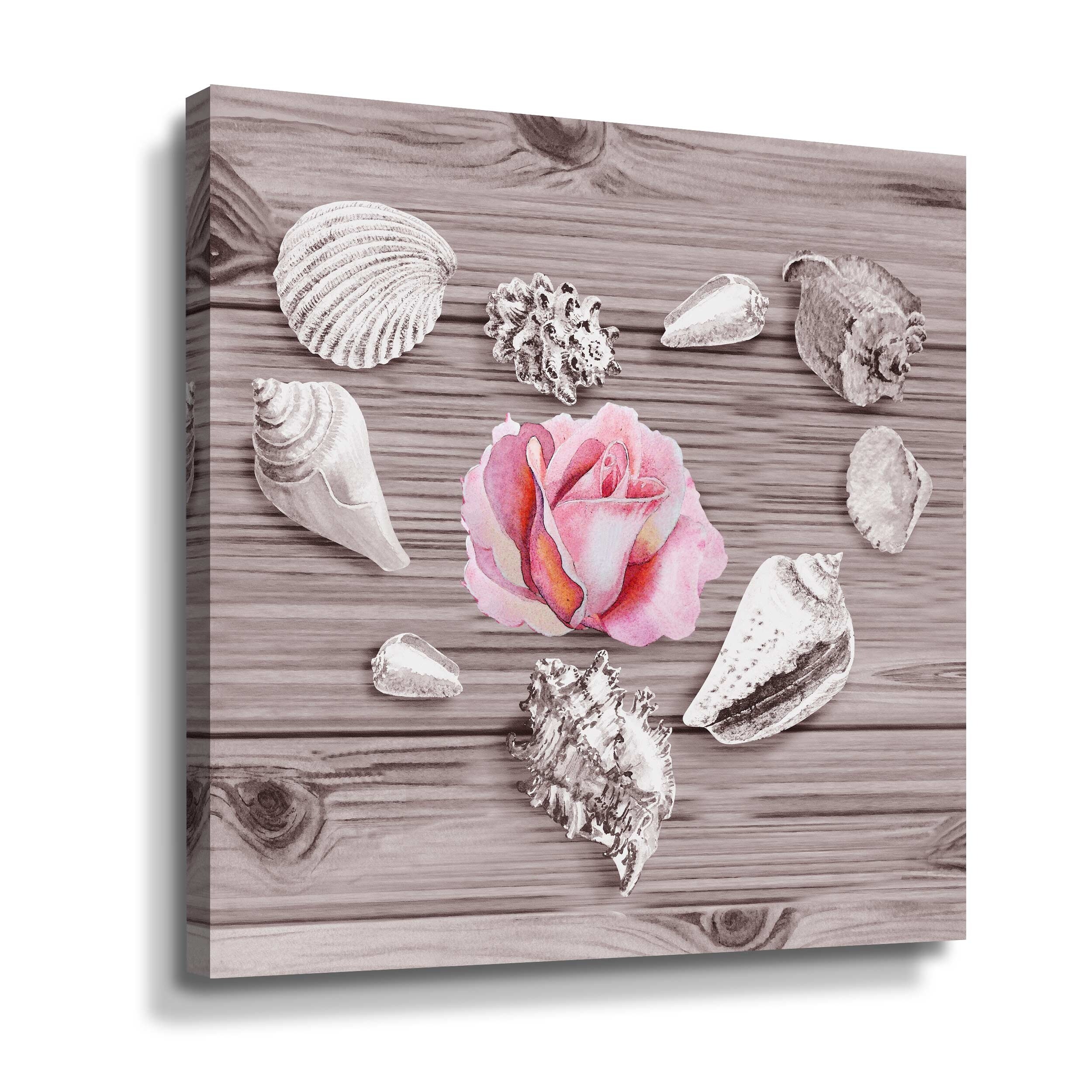 Seashells Heart With Pink Rose Beach House Spa Gallery Wrapped Canvas by Irina Sztukowski