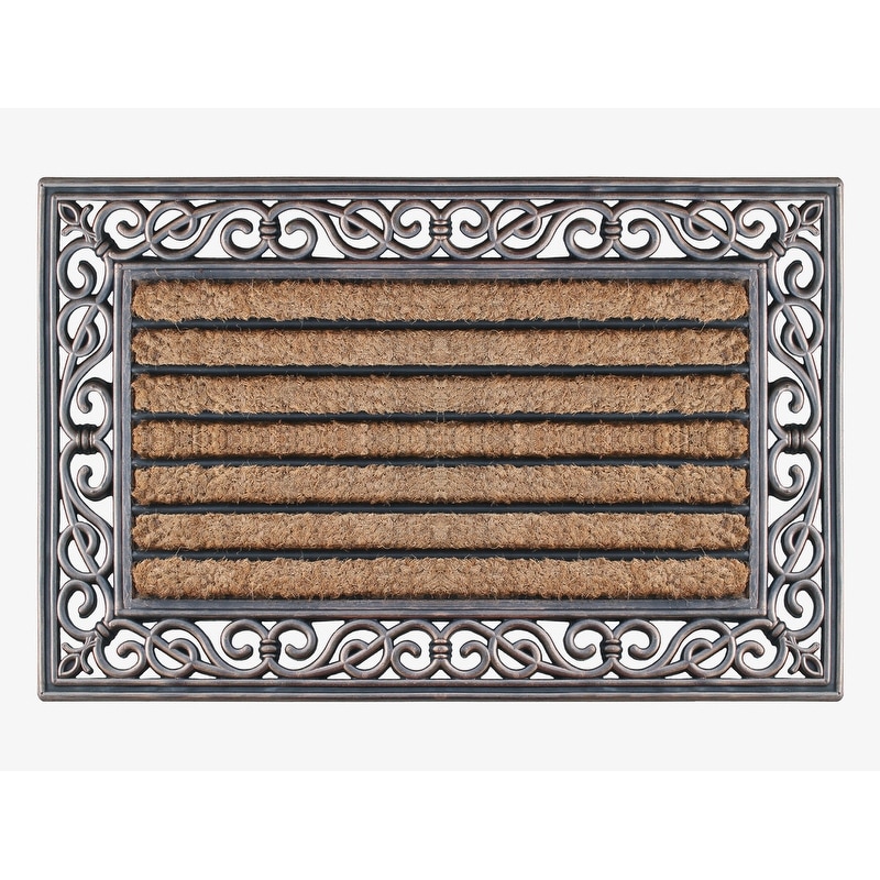 A1HC First Impression Paisley Border Molded Rubber Coir Door Mat 18" x 30"
