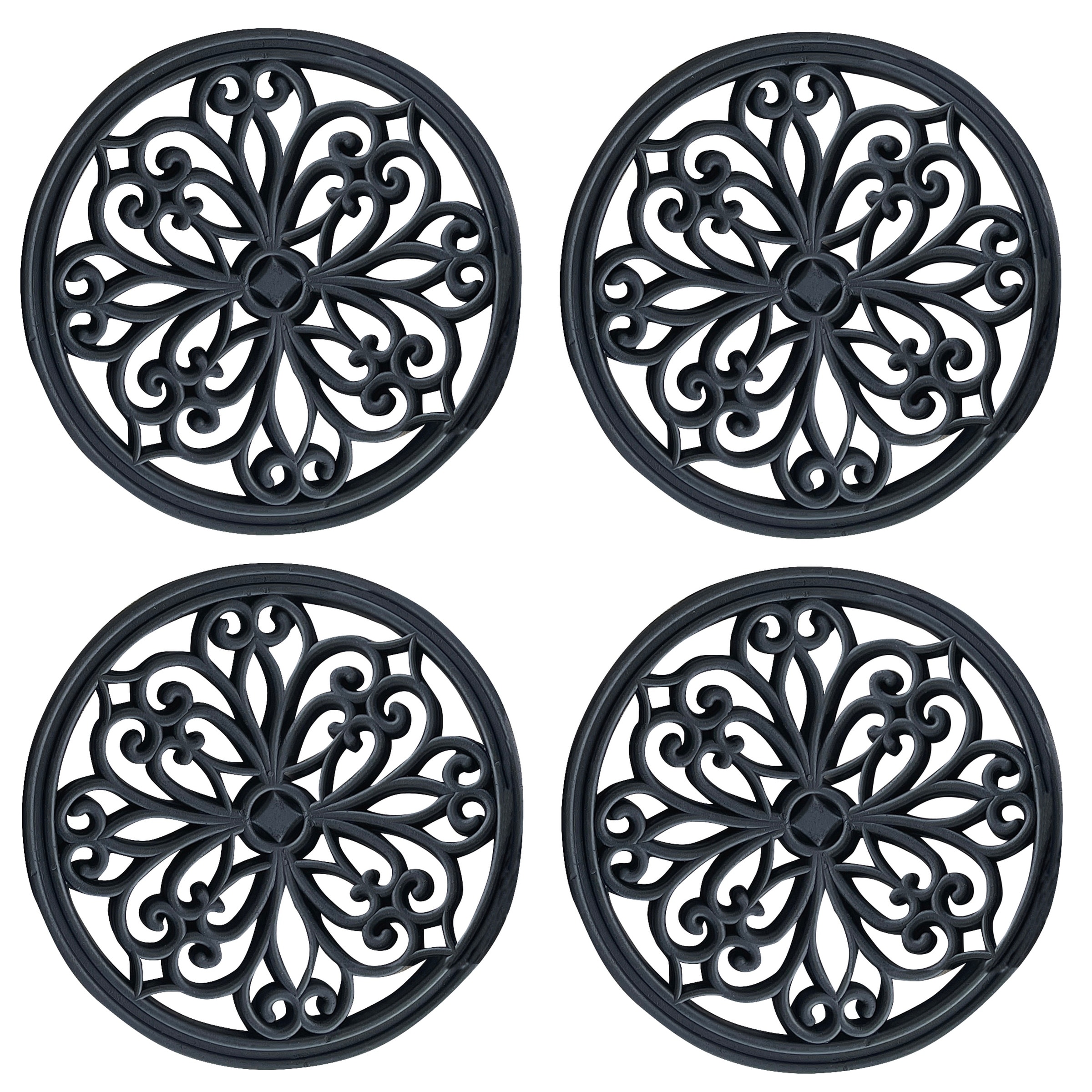 4 Piece 12 inch Round Rubber Scrollwork Step Mat Set - 12"Lx12"Wx.4"H