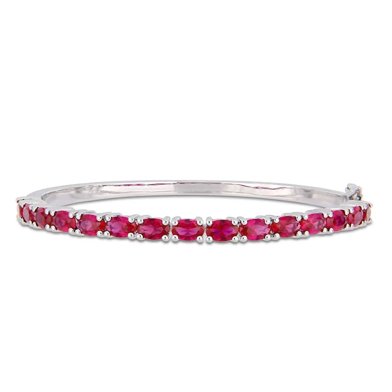 Miadora Sterling Silver 11 1/4ct TGW Created Ruby Semi-Eternity Bangle