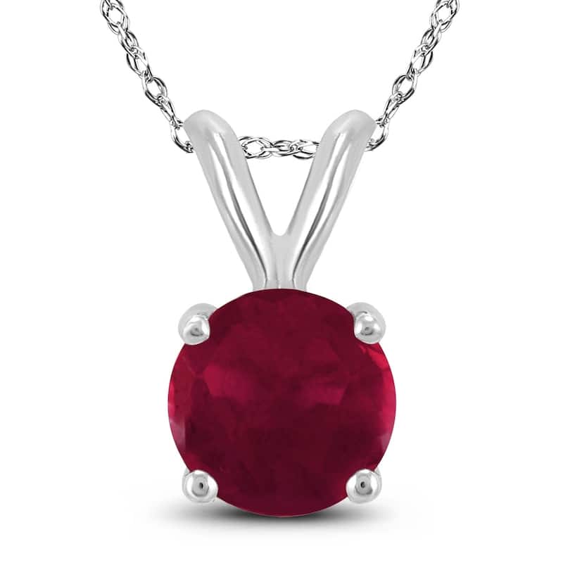 14K White Gold 4MM Round Ruby Pendant