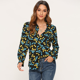 Elegant Bow Tie Women Floral Print Tops Autumn