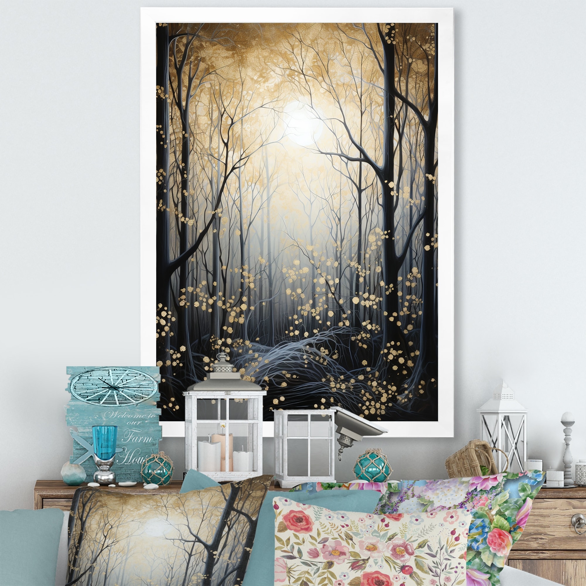 Designart "Forest Tree Monochrome Moonlit Shadows I" Tree Monochrome Framed Canvas Wall Art