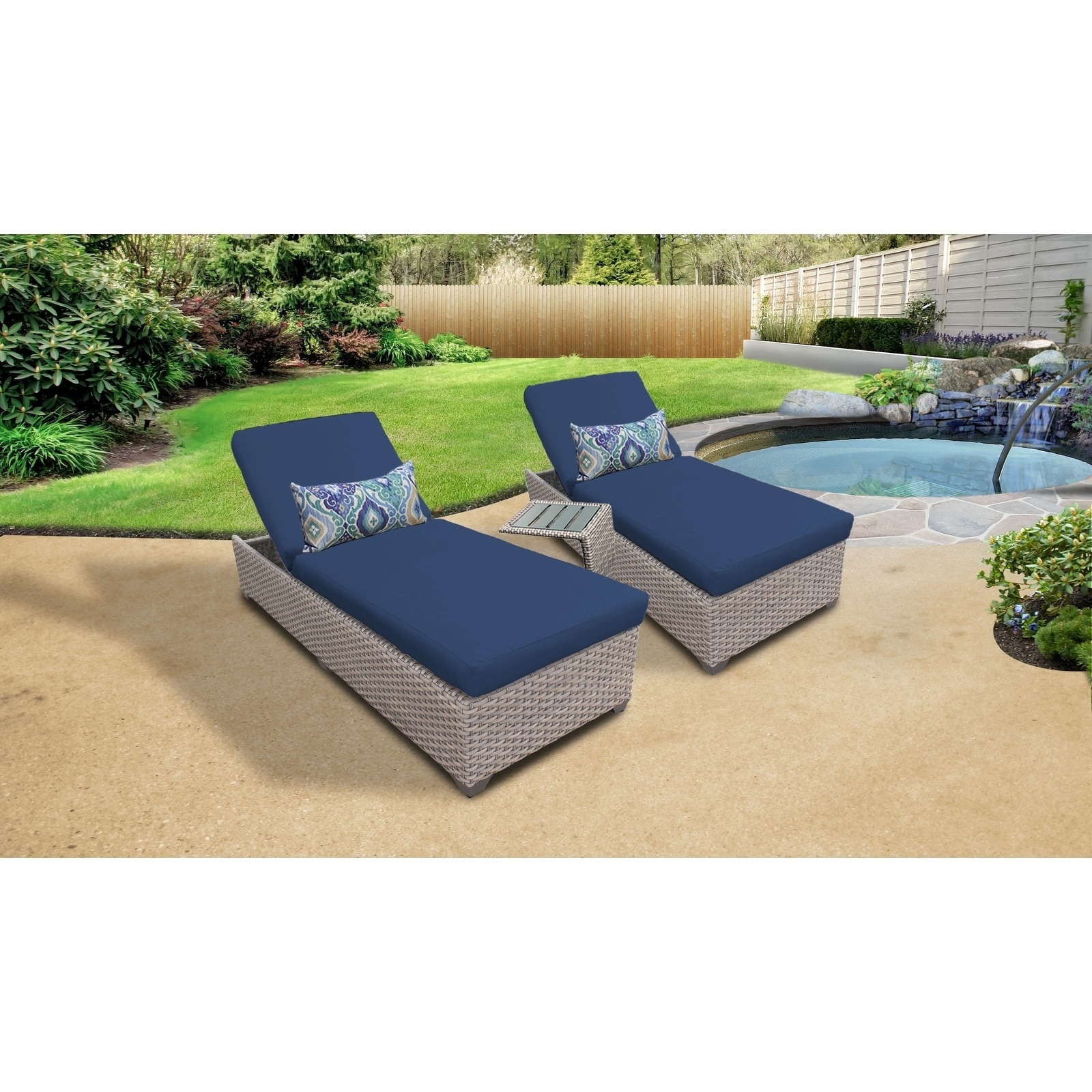 Florence Chaise Set 2 Outdoor Furniture w/ Side Table