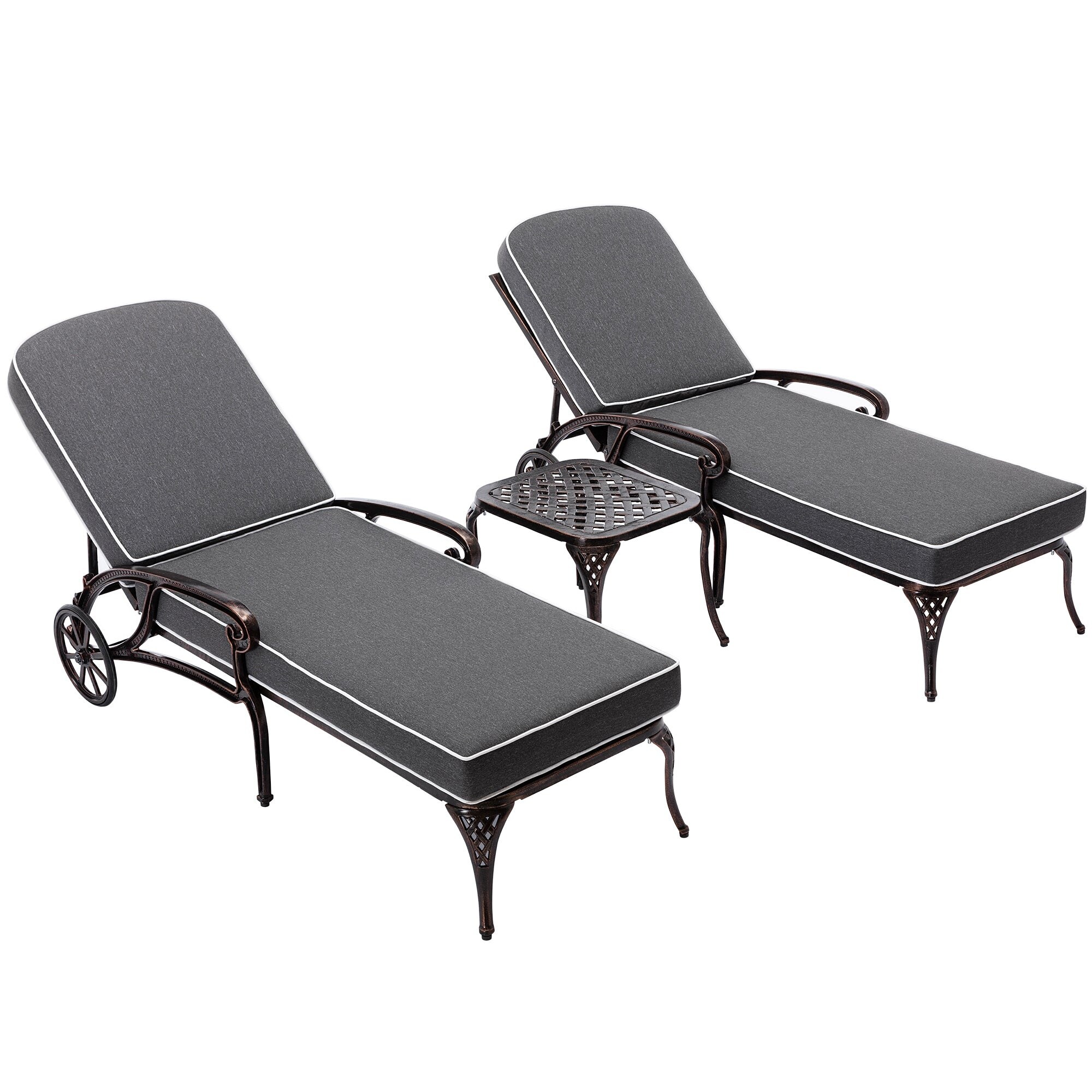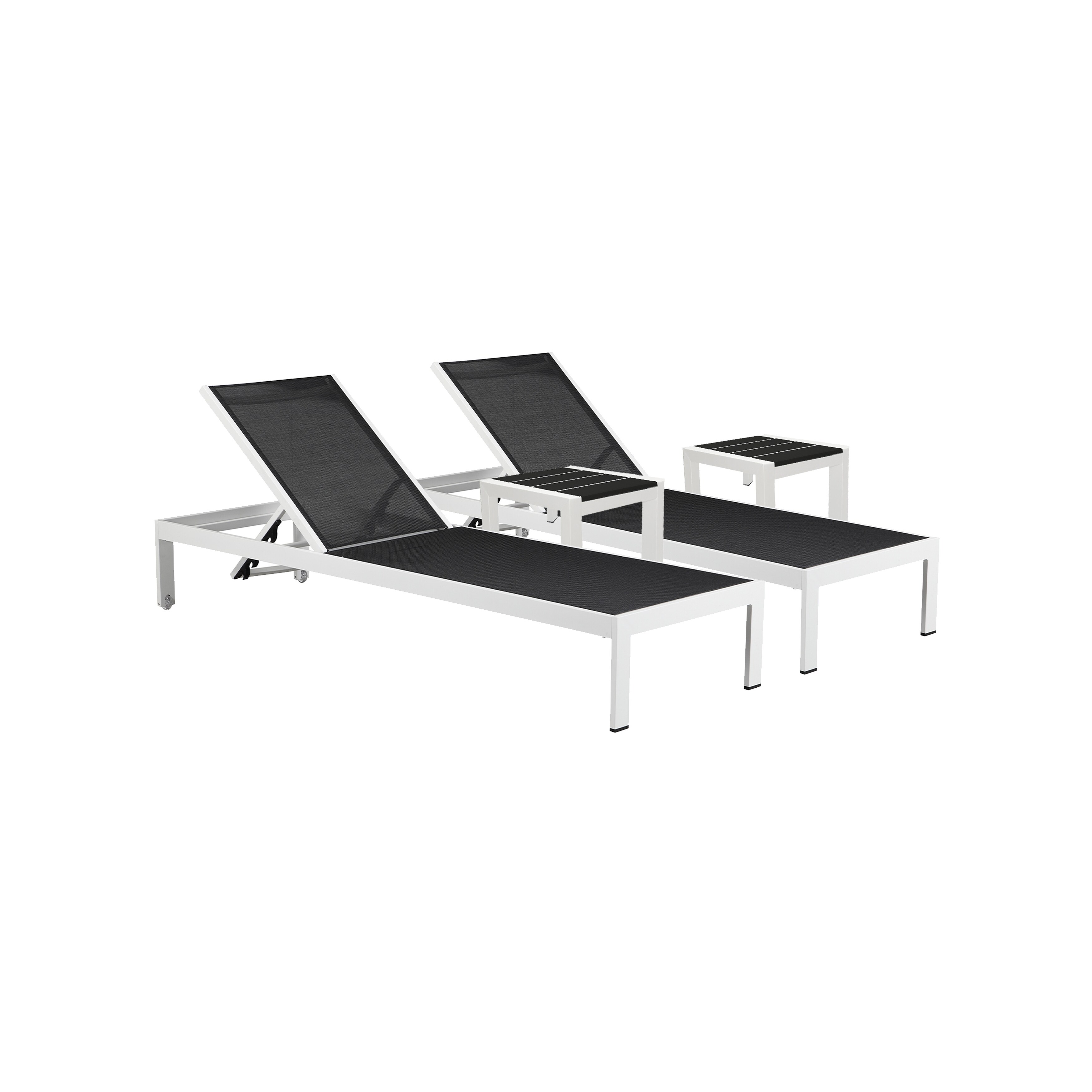 Adjustable Aluminum Outdoor 3-piece Chaise Lounge and Side Table Set