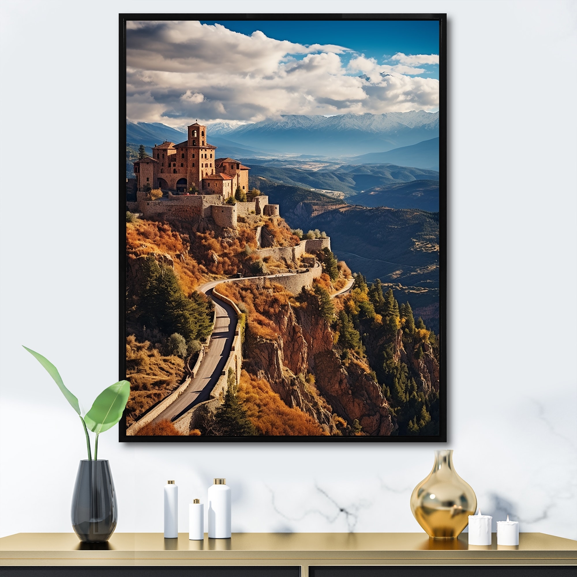 Designart "Spain Castle Sierra" Spain Framed Canvas Art Print
