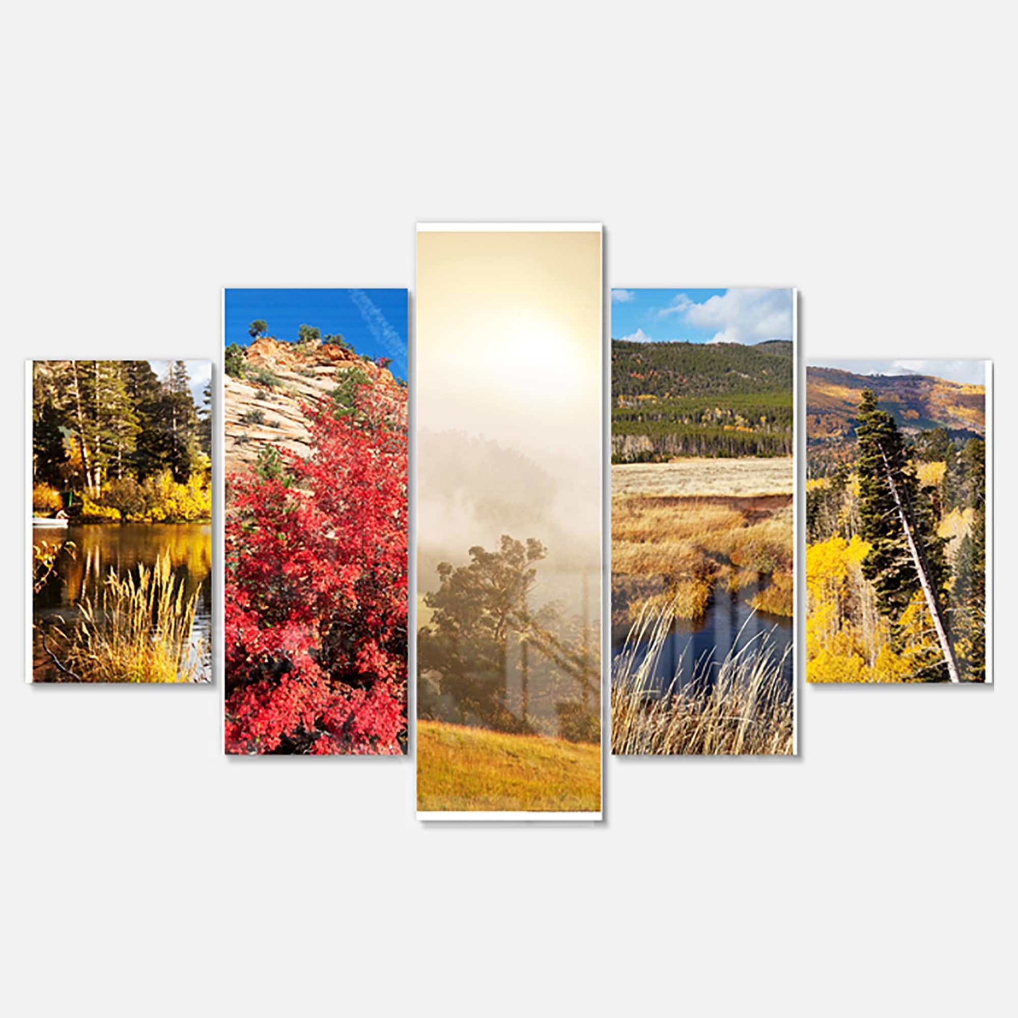 Designart 'Autumn in Sierra Nevade Collage' Oversized Landscape Glossy Metal Wall Art