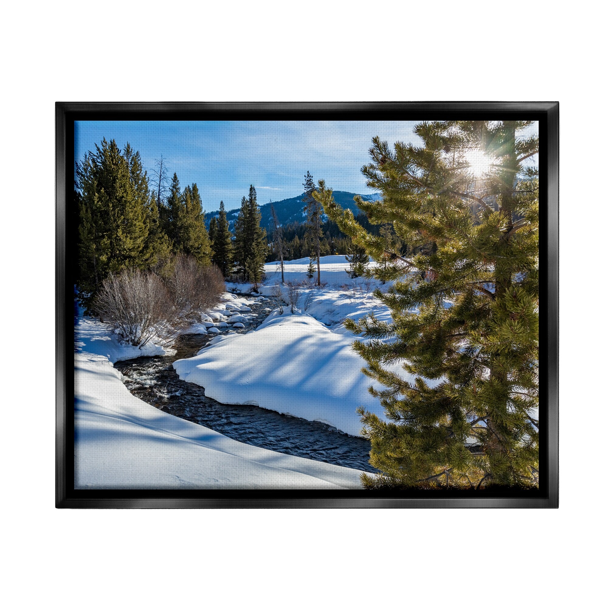 Stupell River Flowing Between Snowy Slopes Distant Mountain Floater Frame, Design by Steve Smith