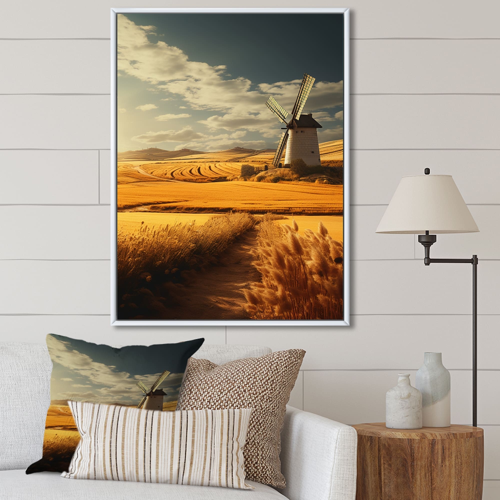 Designart "Spain Golden Fields Mediterranean II" Spain Framed Canvas Art Print