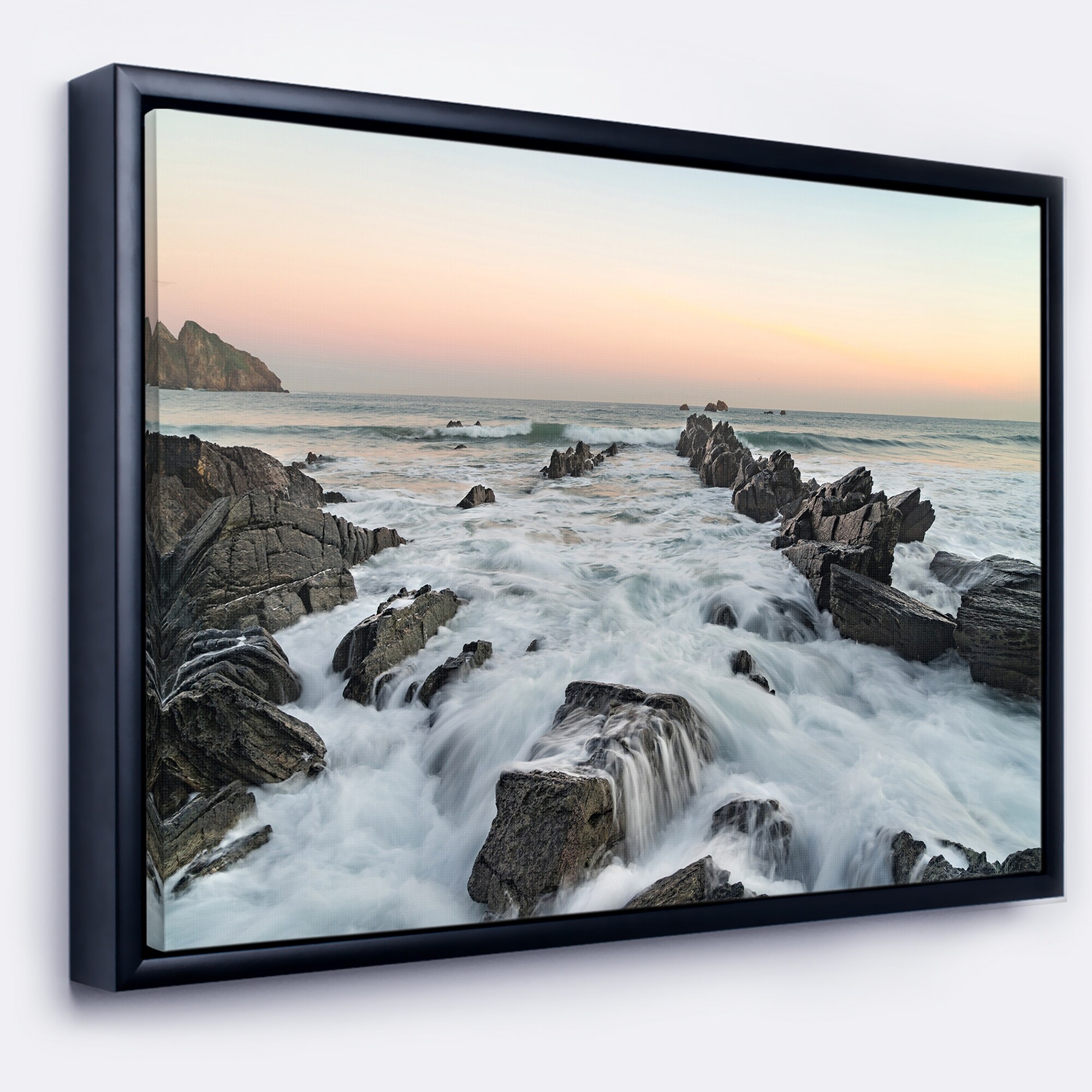 Designart "Bay of Biscay Spain Seashore" Landscape Framed Canvas Art