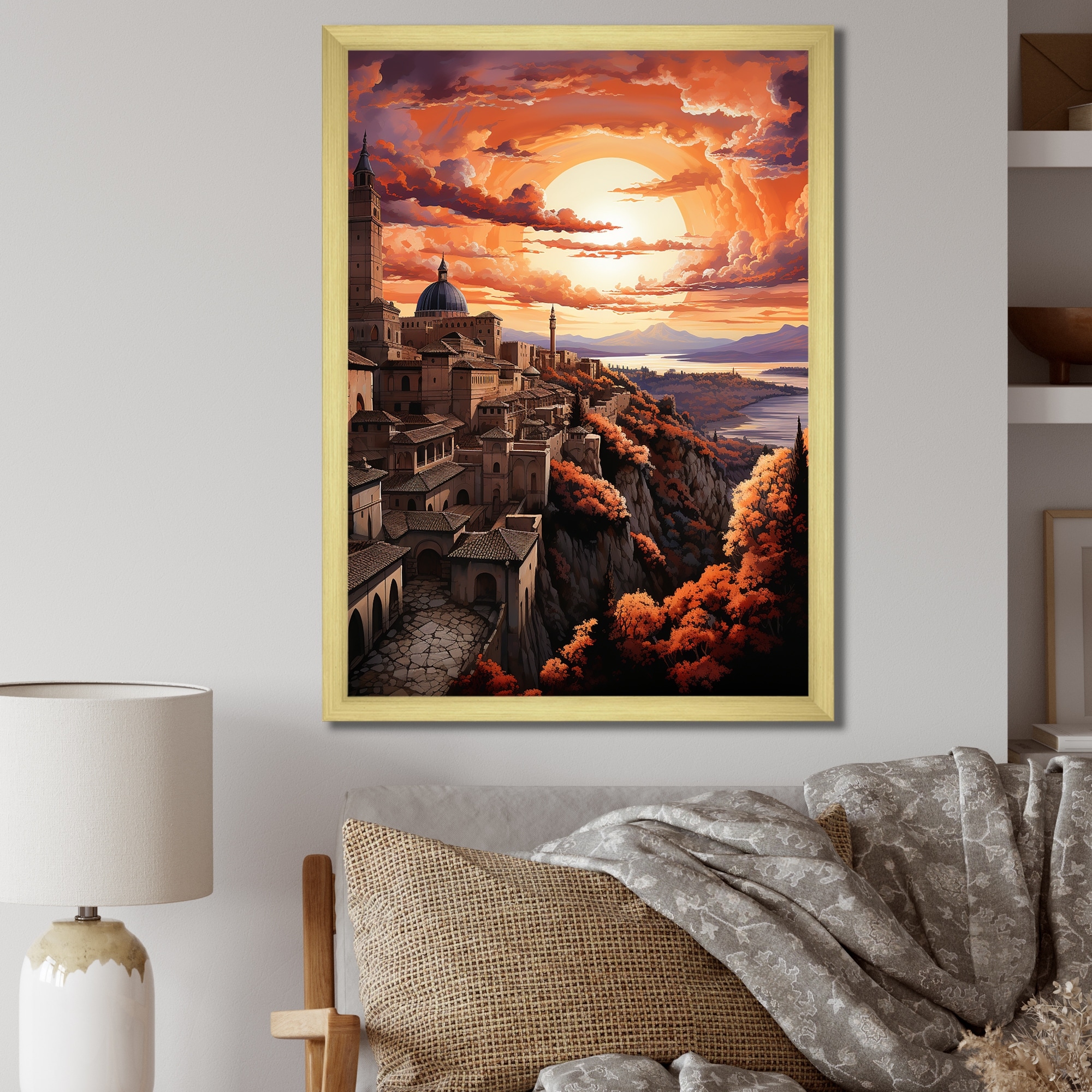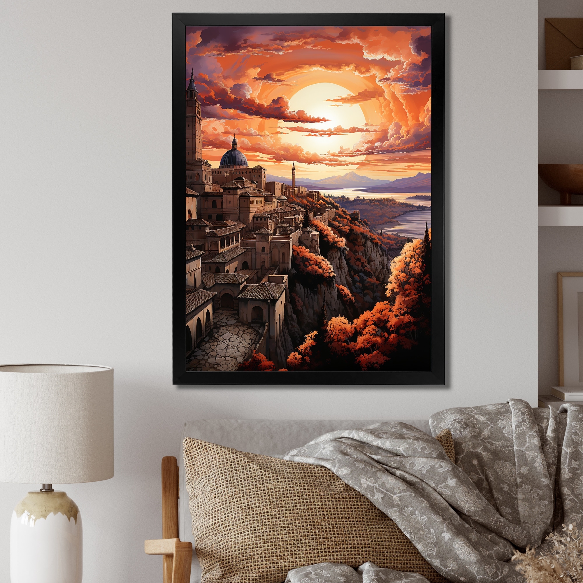 Designart "Spain Sunset Over the Alhambra II" Spain Framed Canvas Wall Art