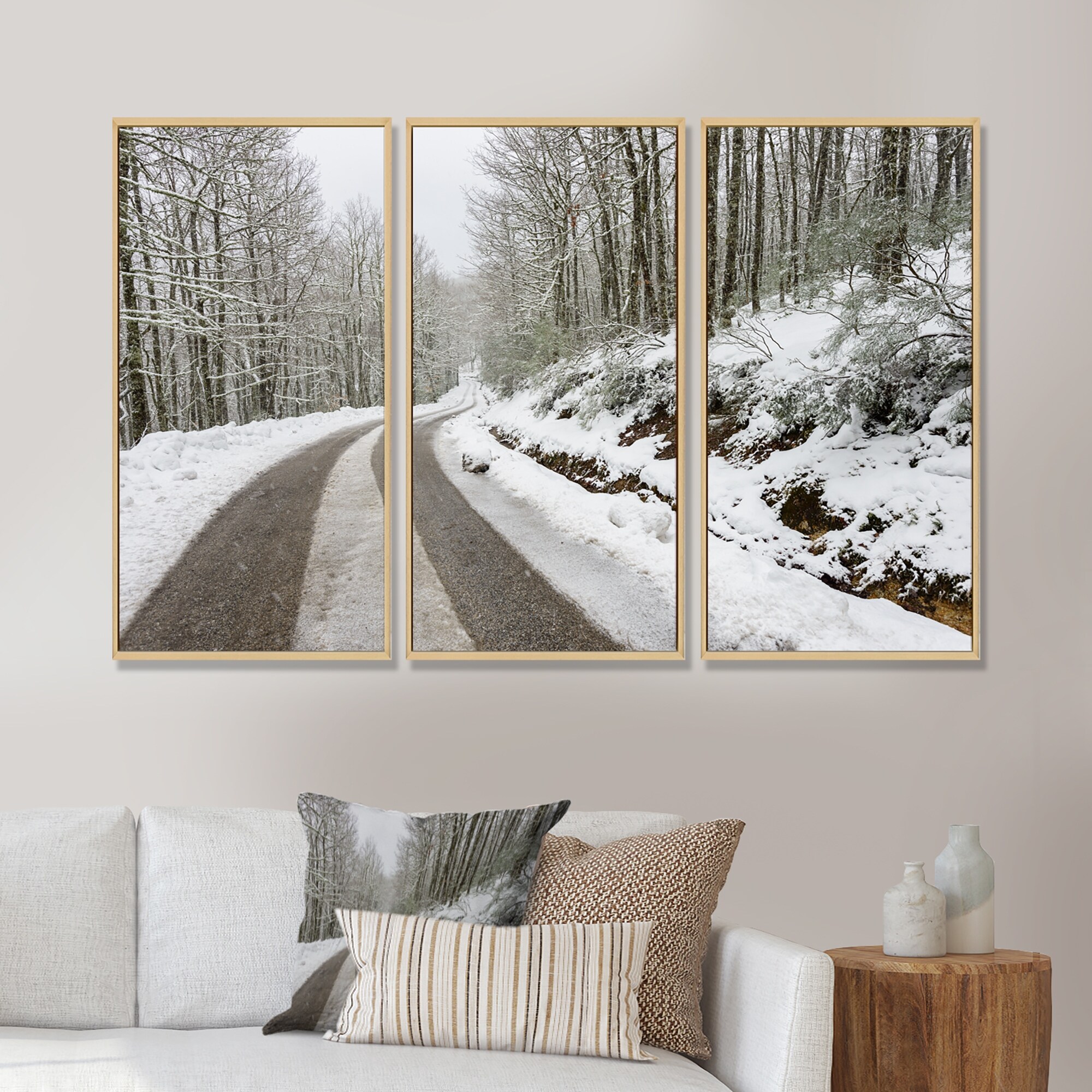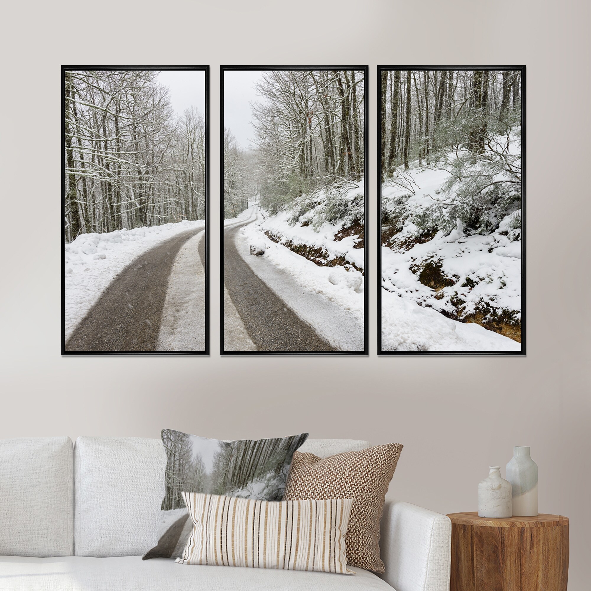 Designart "Snow Storm at Piornedo Spain" Landscape Framed Artwork Set of 3 - 4 Colors of Frames