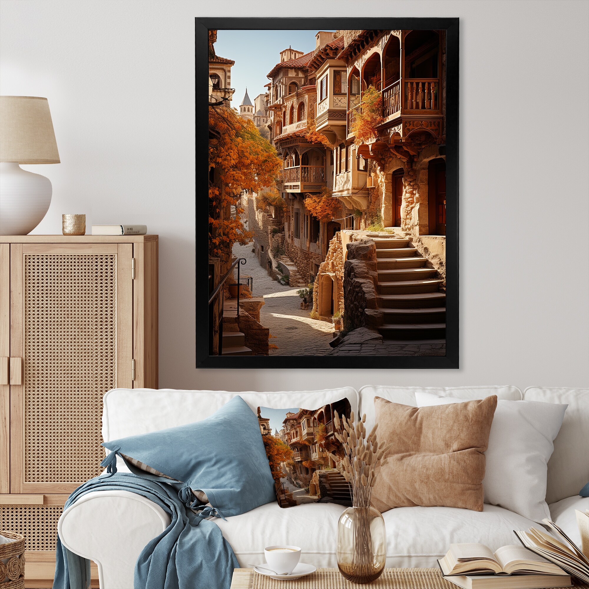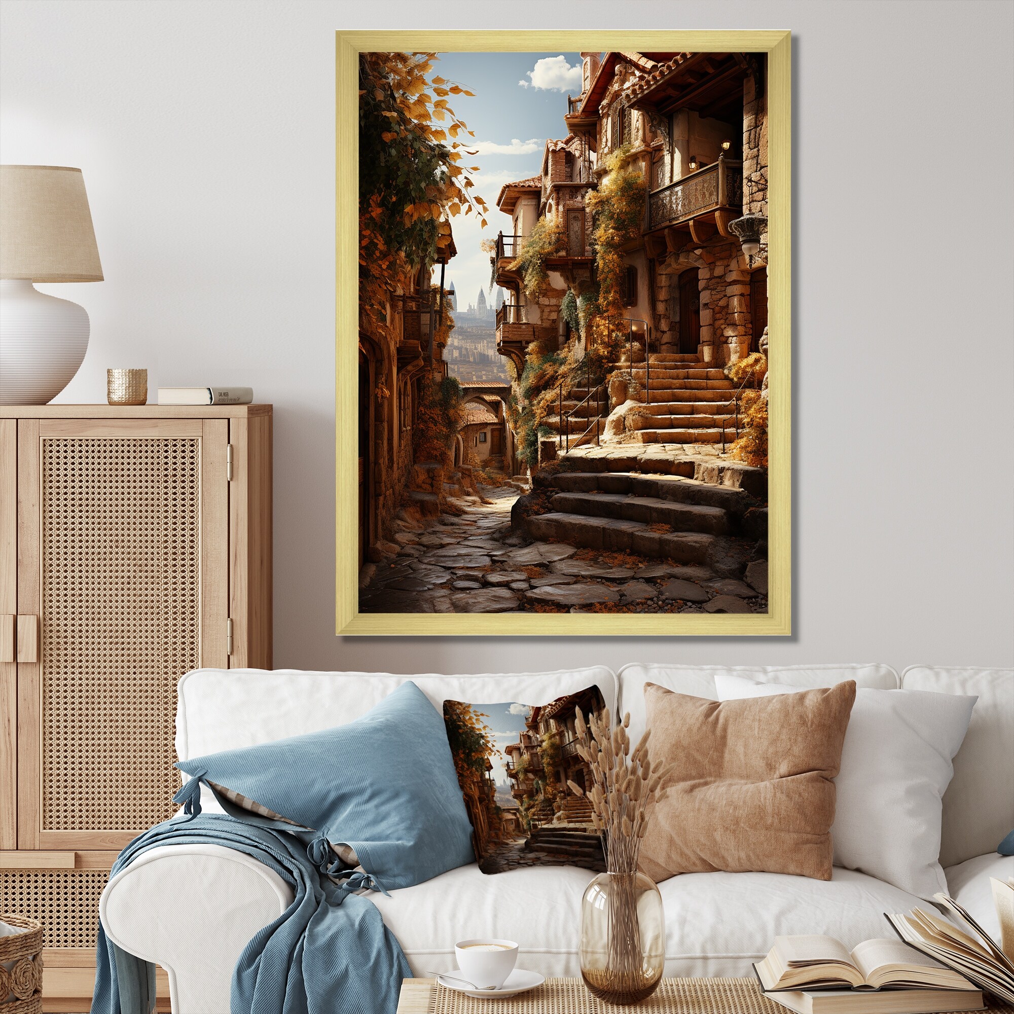 Designart "Spain Medieval Streets of Toledoin II" Spain Framed Canvas Art Print