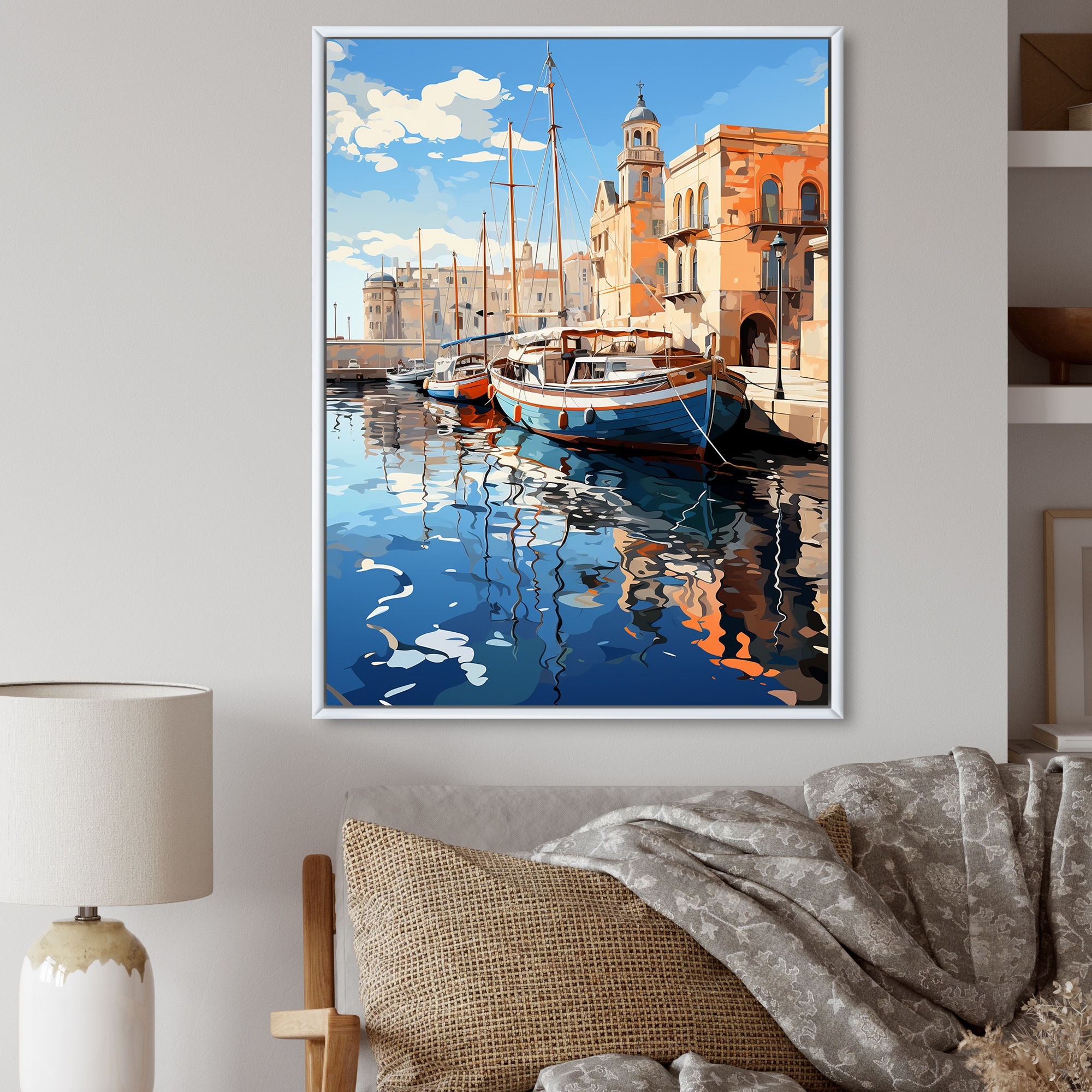 Designart "Spain Mediterranean Harbor in Valenciain I" Spain Framed Canvas Prints