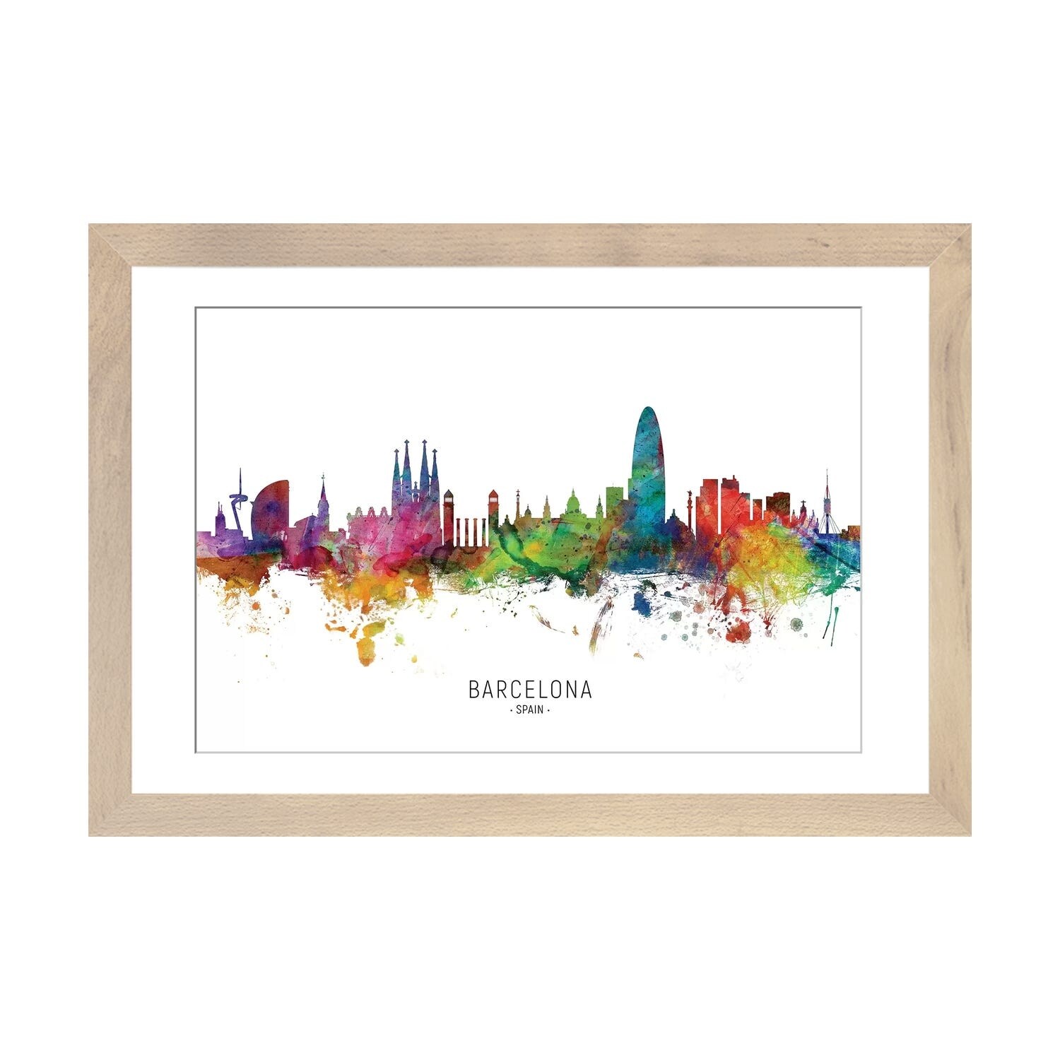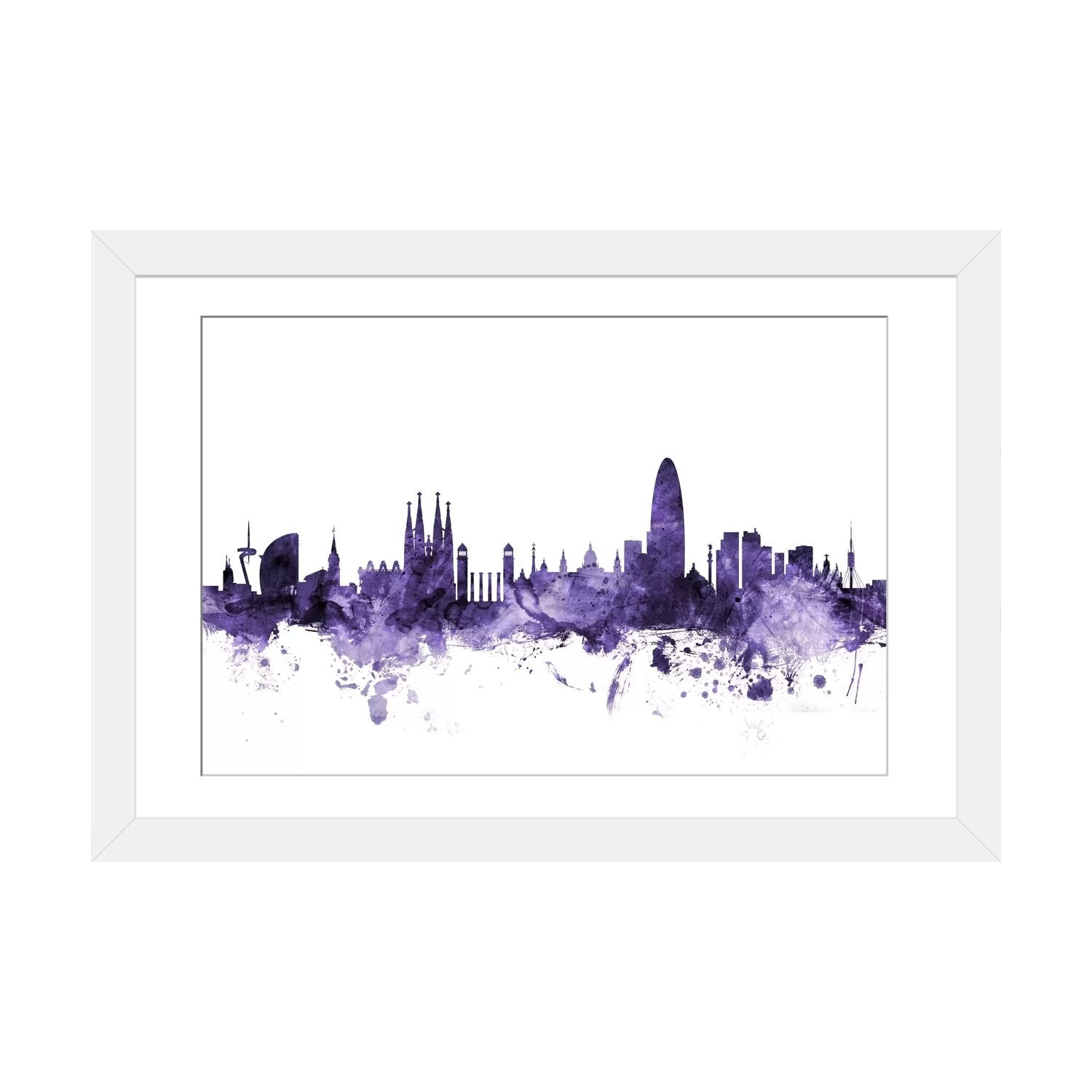 iCanvas "Barcelona, Spain Skyline" by Michael Tompsett Framed