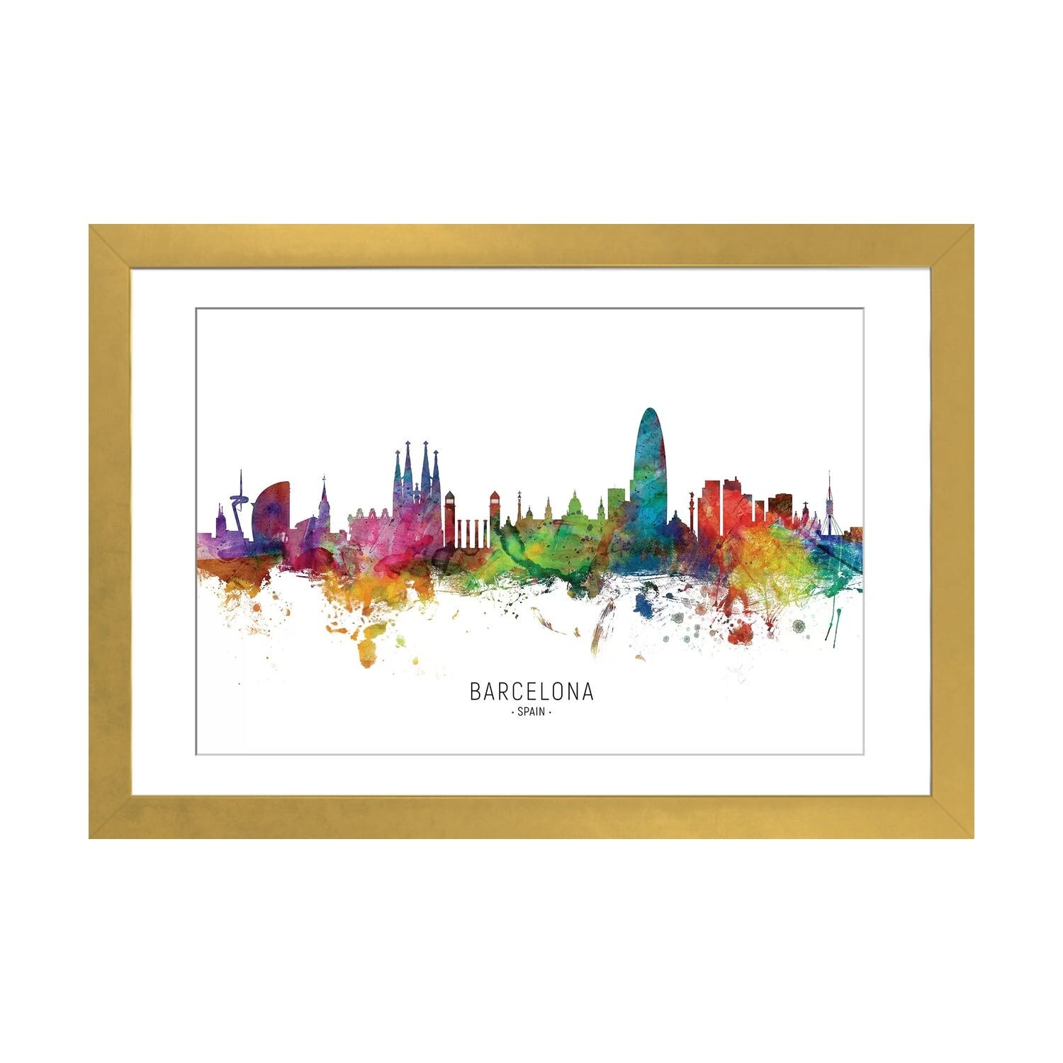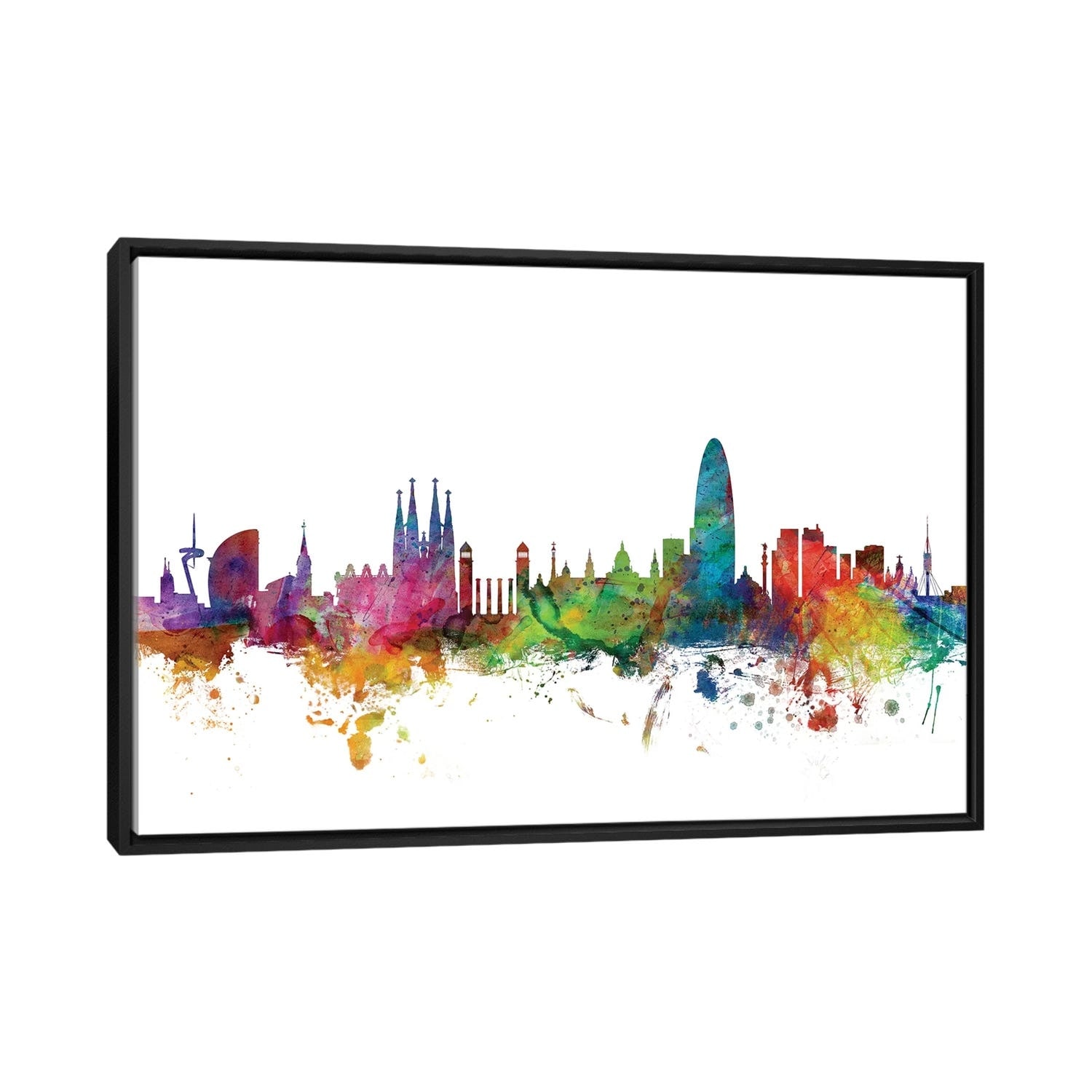 iCanvas "Barcelona Spain Skyline" by Michael Tompsett Framed Canvas Print