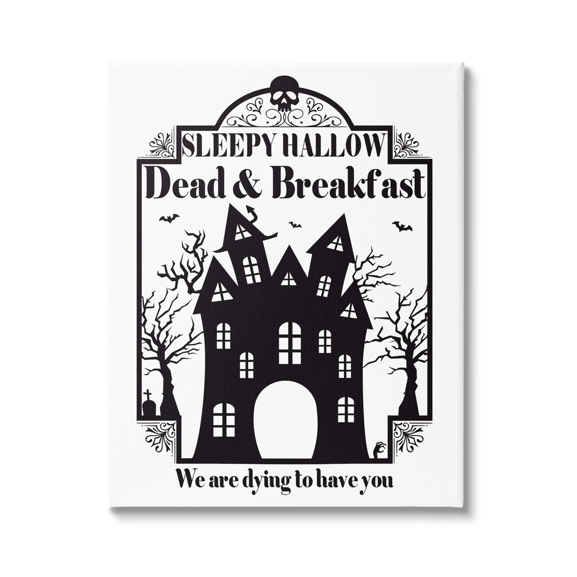 Stupell Dead & Breakfast Spooky Haunted House Imagery Sign Canvas Wall Art - White