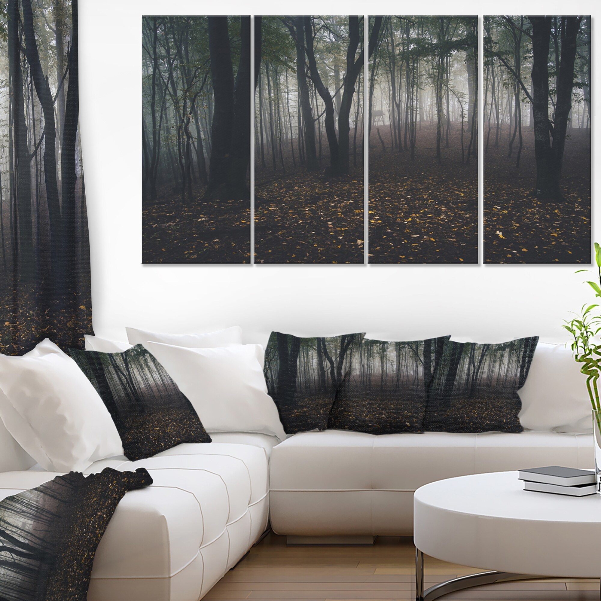 Designart "Dark Spooky Misty Wild Forest" Oversized Forest Framed Canvas Artwork Print
