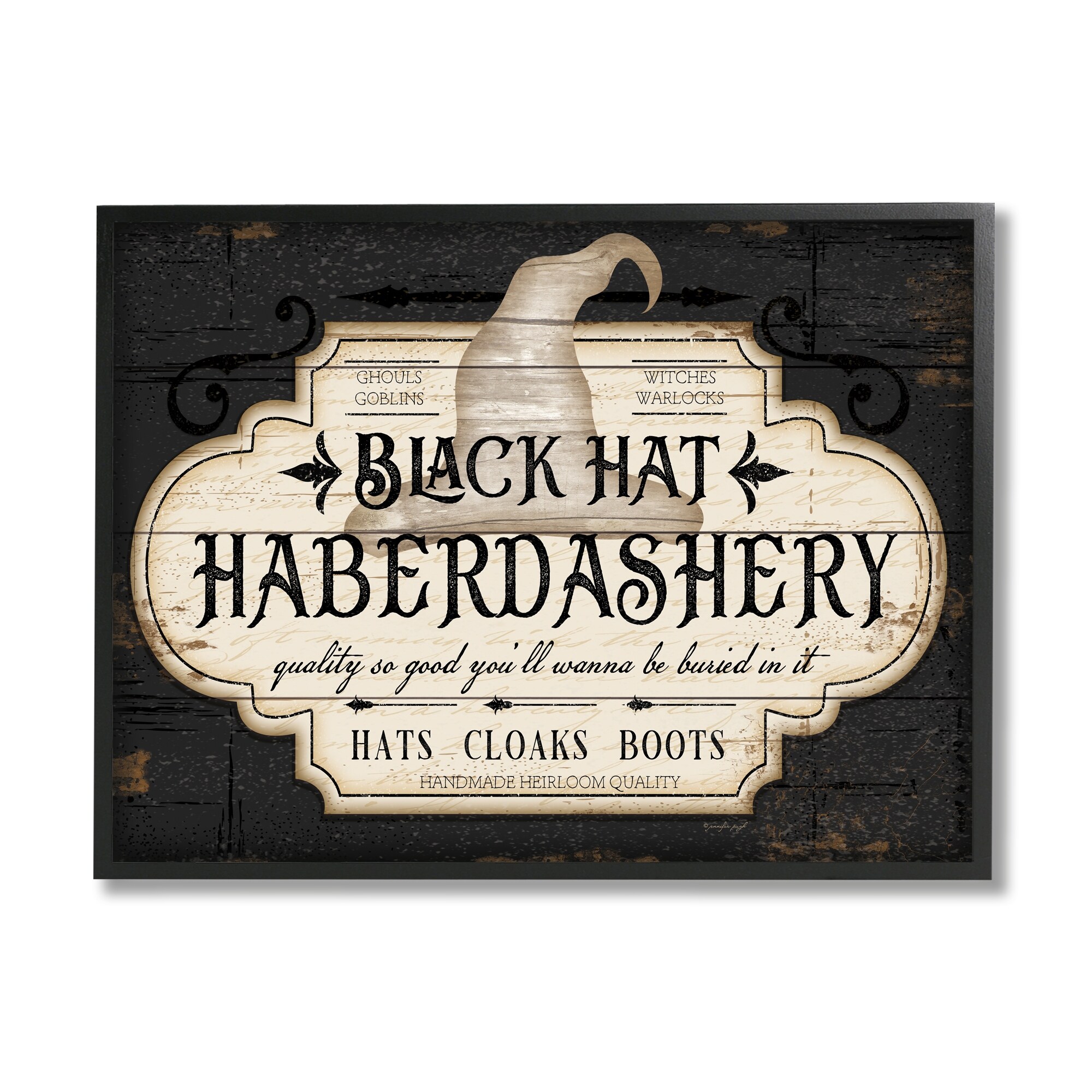 Stupell Black Hat Haberdashery Halloween Sign Spooky Heirloom Quality Framed Wall Art